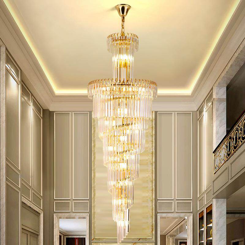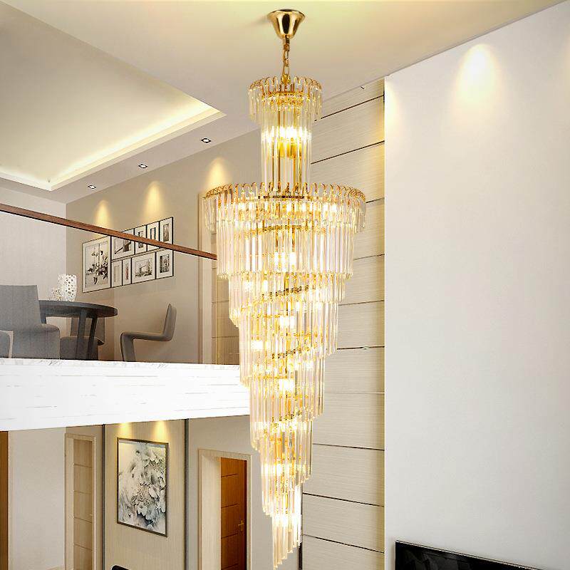 复式楼大吊灯别墅客厅中空简约楼中楼跃层轻奢长水晶旋转楼梯灯