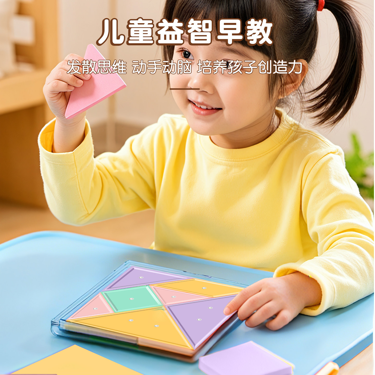 磁性七巧板小学生专用一二年级下册数学教具磁吸智力磁力小学生七彩拼图几何形状盒装教材同步磁吸塑料七巧板