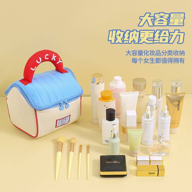 可爱房子化妆包收纳收纳袋大容量护肤品手提便携便携式旅行洗漱