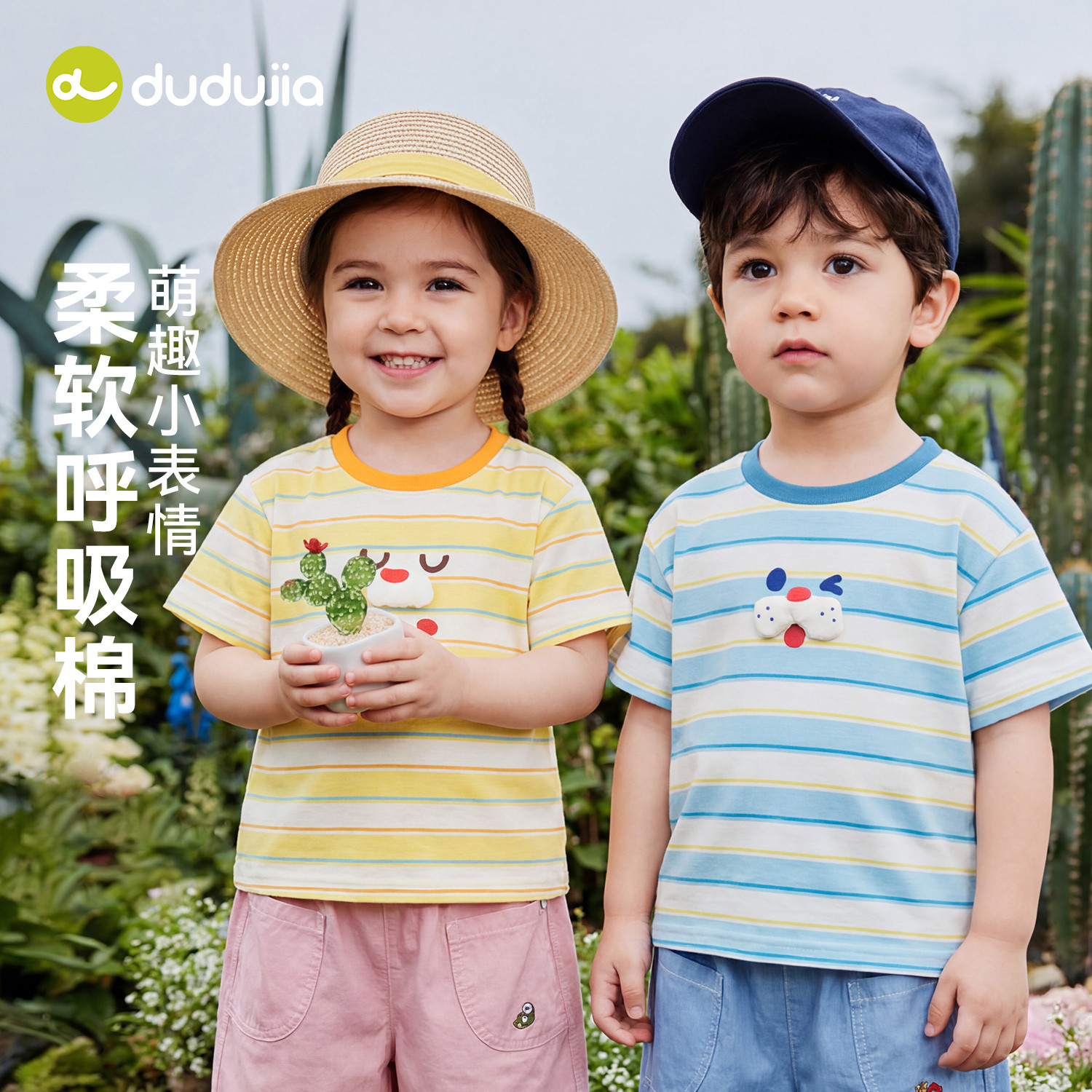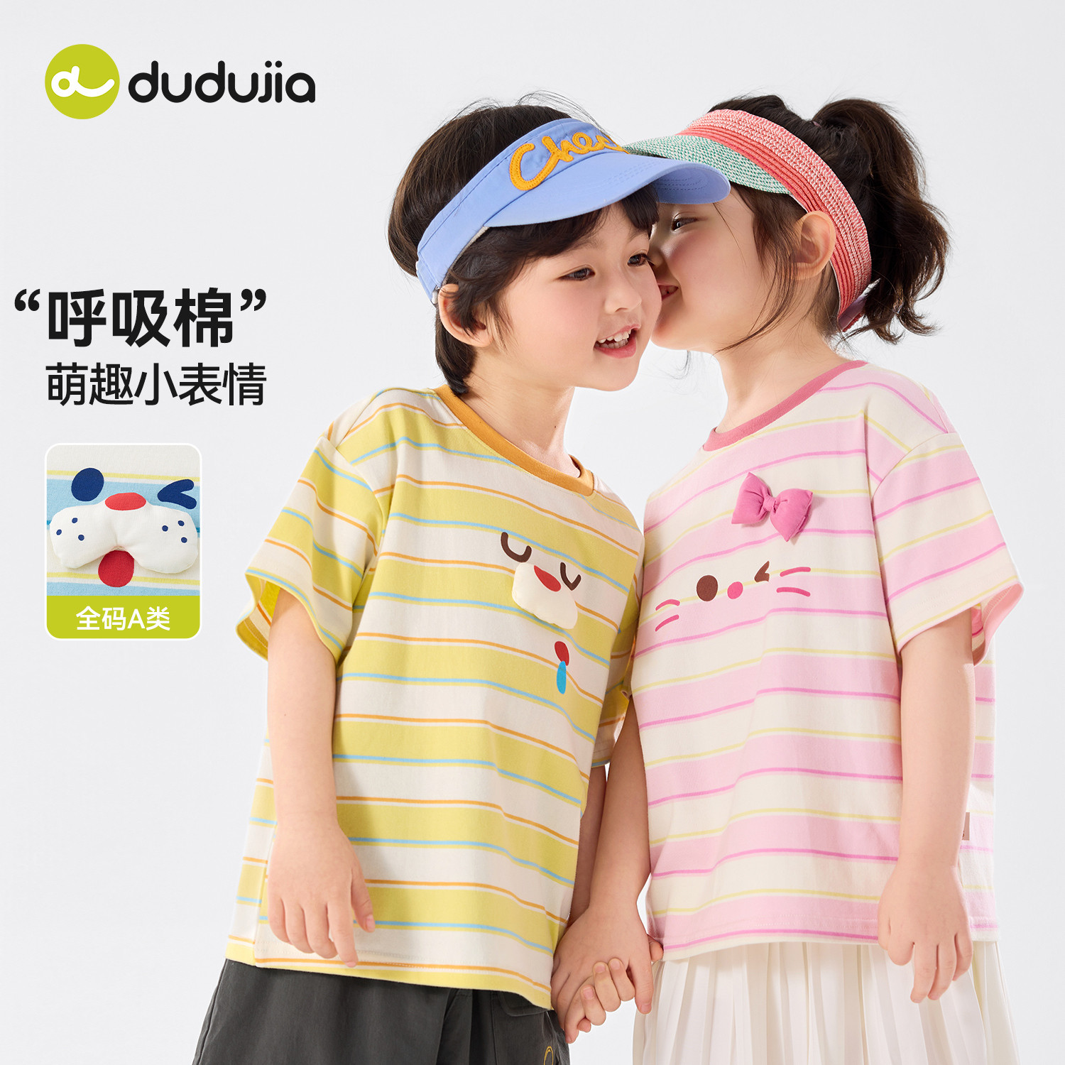 dudujia男童t恤女童短袖夏季新款儿童条纹上衣透气宝宝童装夏装类