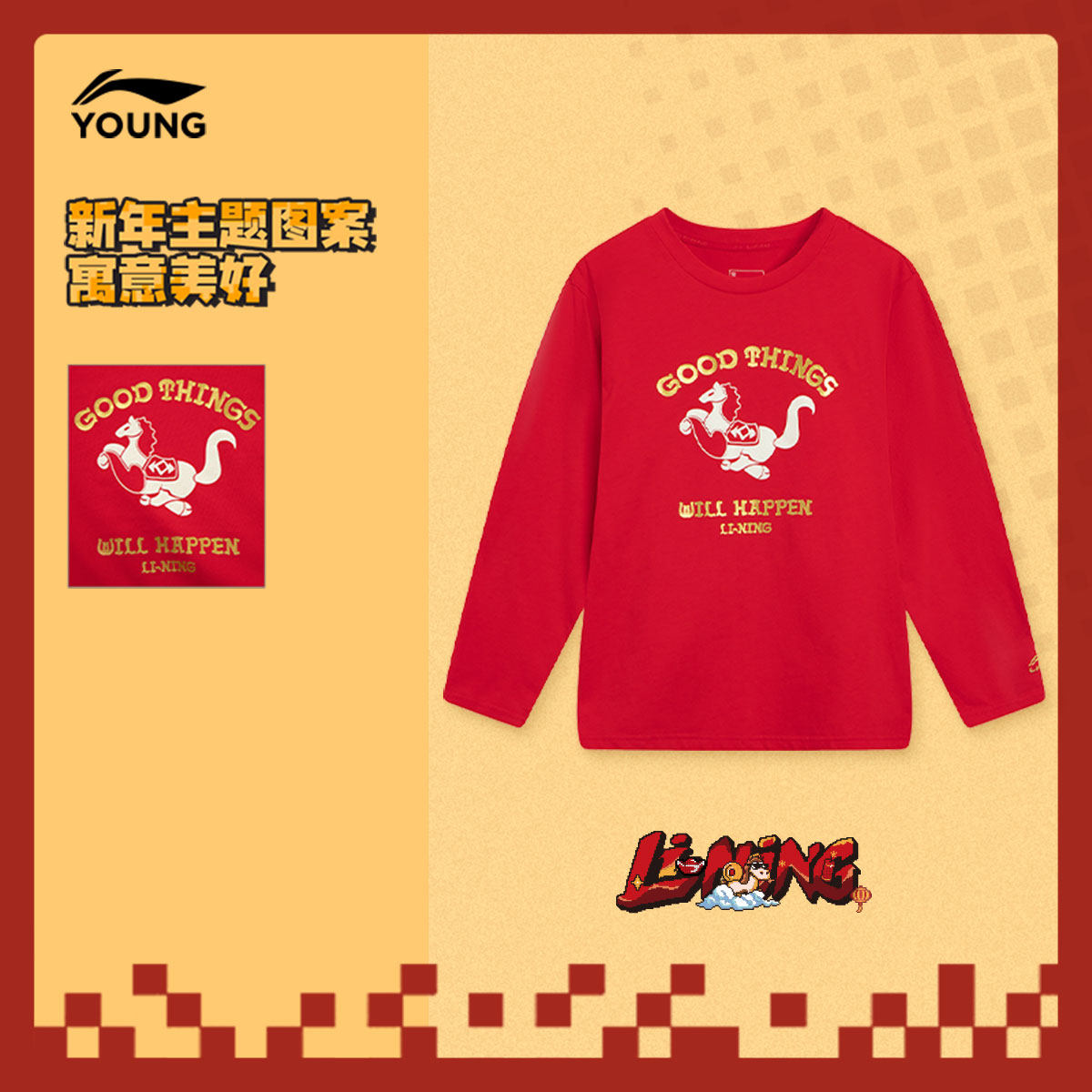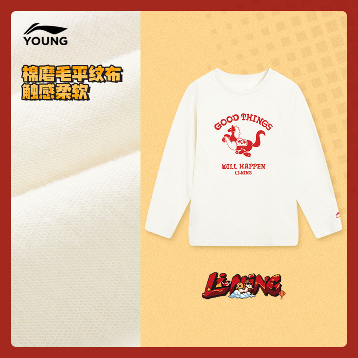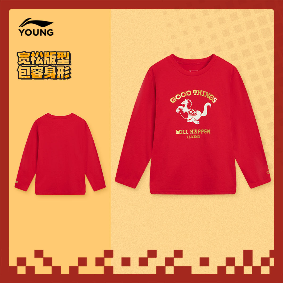 李宁童装长袖T恤男大童运动生活系列青少年宽松春季休闲针织童装
