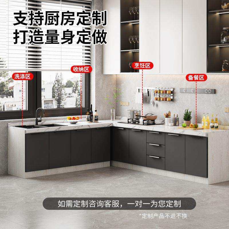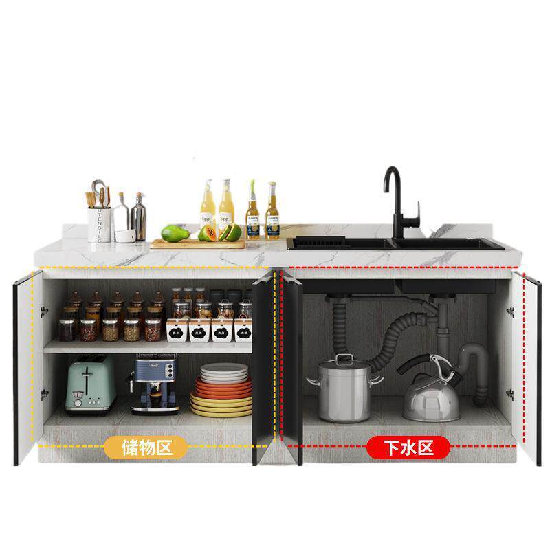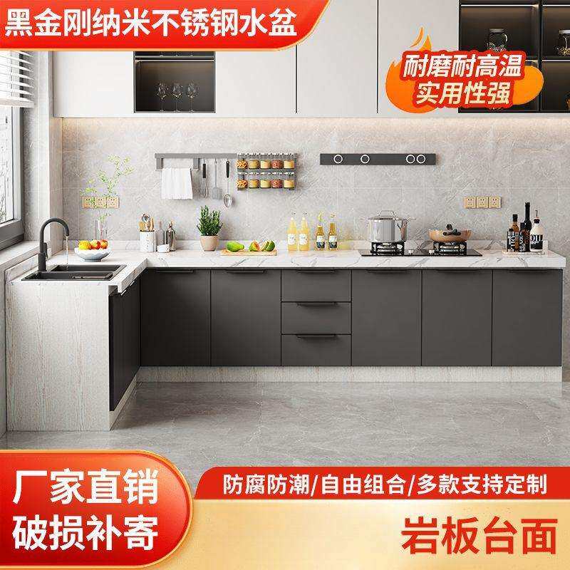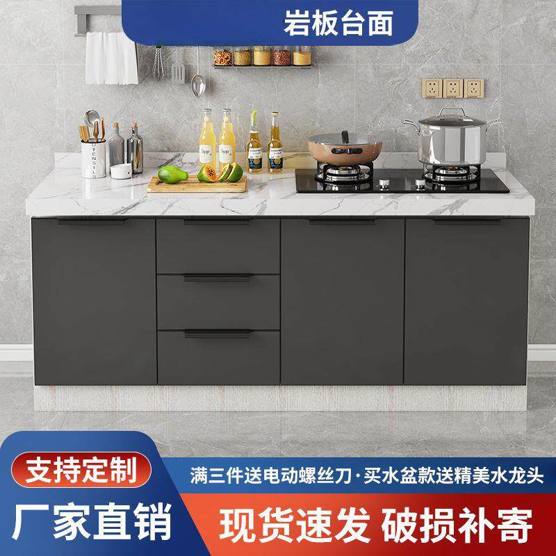 新款简易橱柜台面岩板整体橱柜厨房一体式灶台家用不锈钢水槽柜