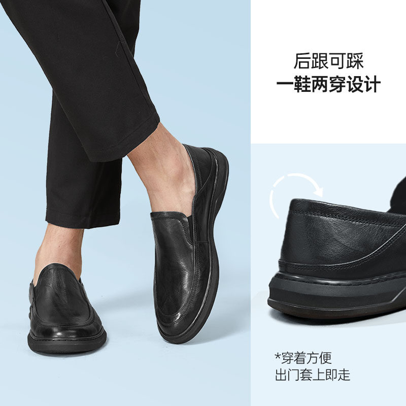 奥康官方男鞋春秋季真皮商务休闲皮鞋时尚套脚平底脚蹬舒适爸爸鞋
