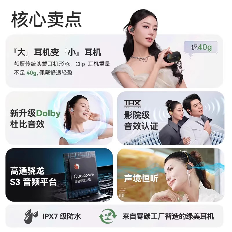 Cleer Clip星弧开放式智能穿戴杜比+THX音效大师音质头戴式AI耳机