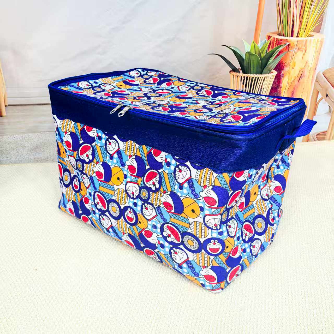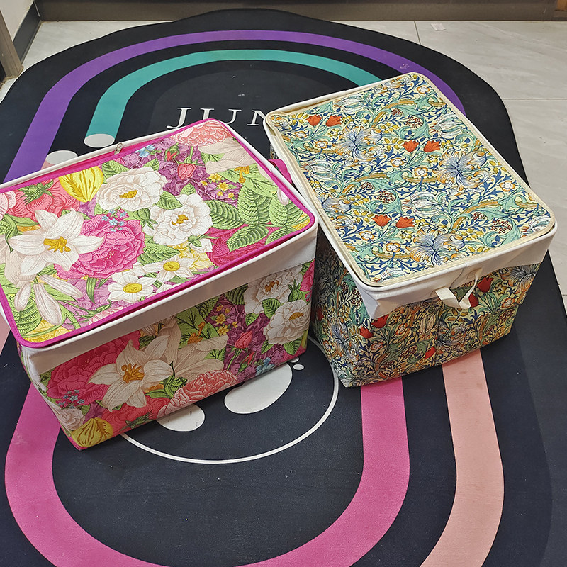 三层加厚帆布带盖拉链收纳箱防潮大容量衣服被子收纳袋可折叠整理