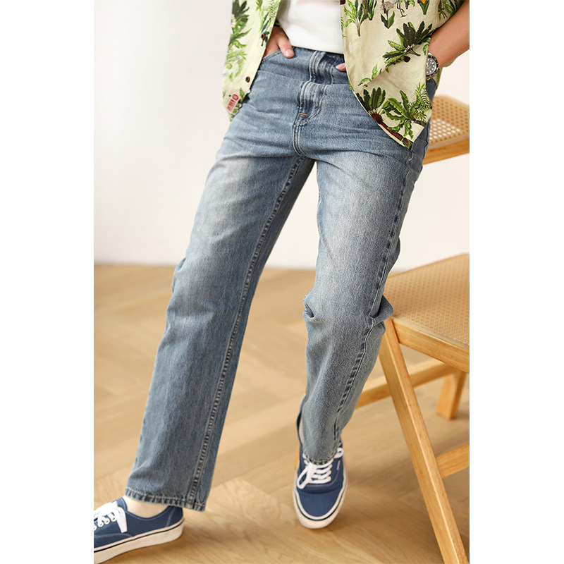 森柔牛仔森马牛仔裤男款2025新直筒裤长裤原色复古美式水洗宽松潮
