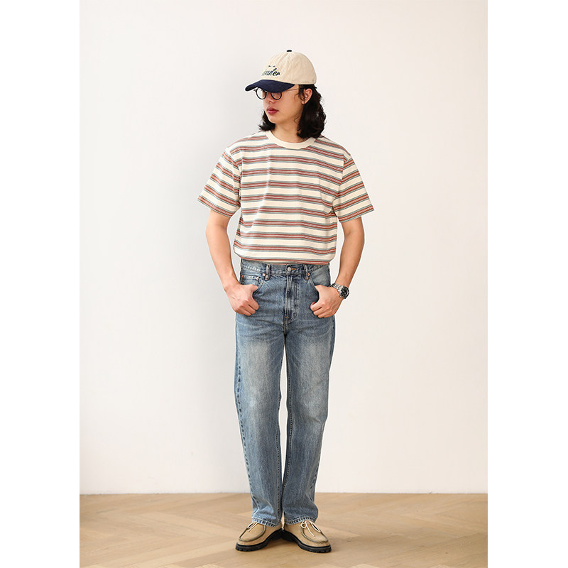 MBBCAR窄幅复古港风高端水洗赤耳丹宁直筒裤原创设计做旧牛仔裤男
