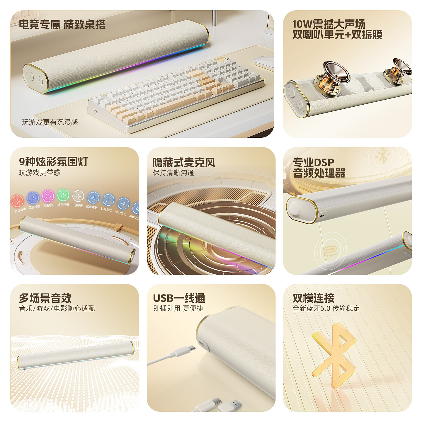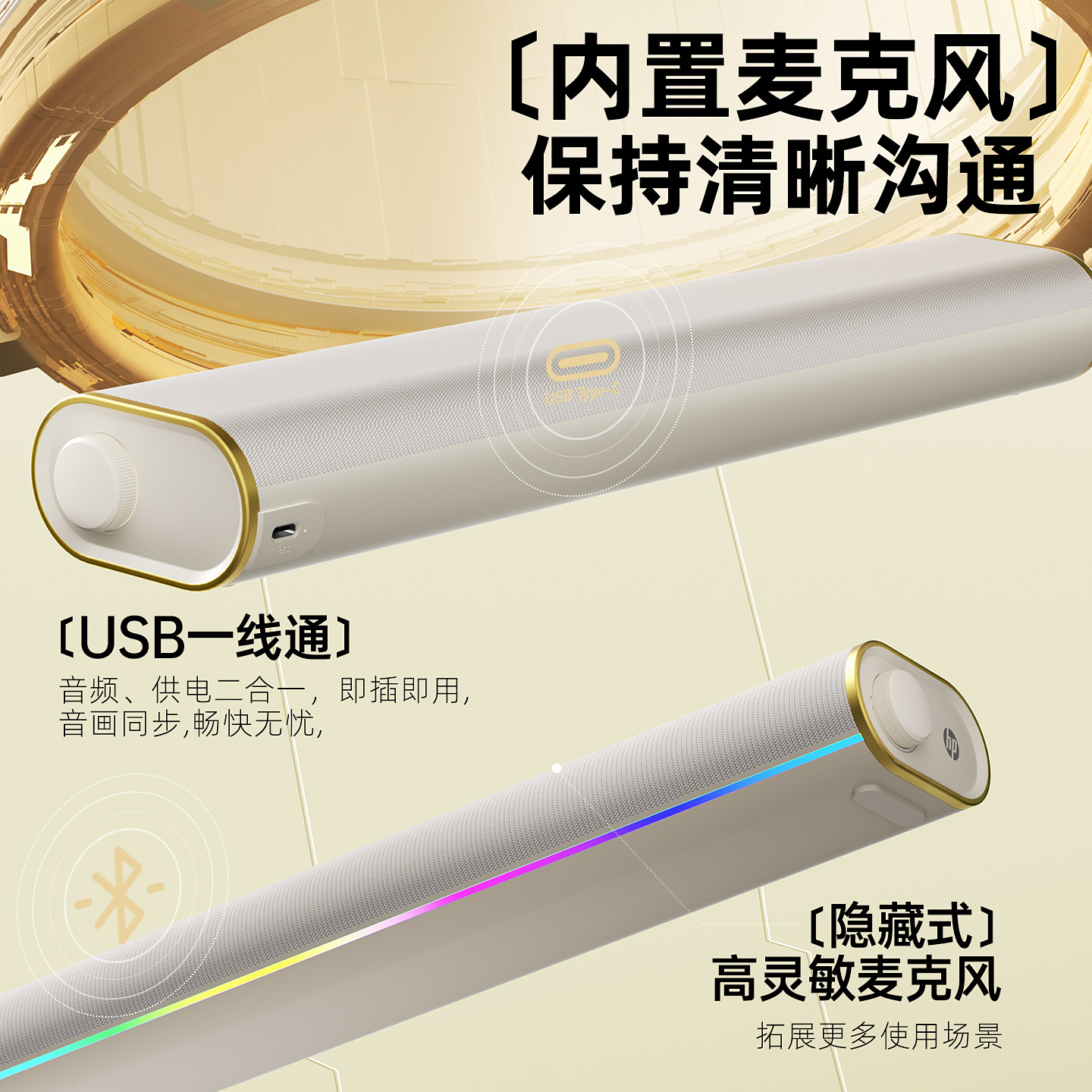 惠普电脑音响台式家用有线游戏电竞蓝牙桌面音箱麦克风一体重低音