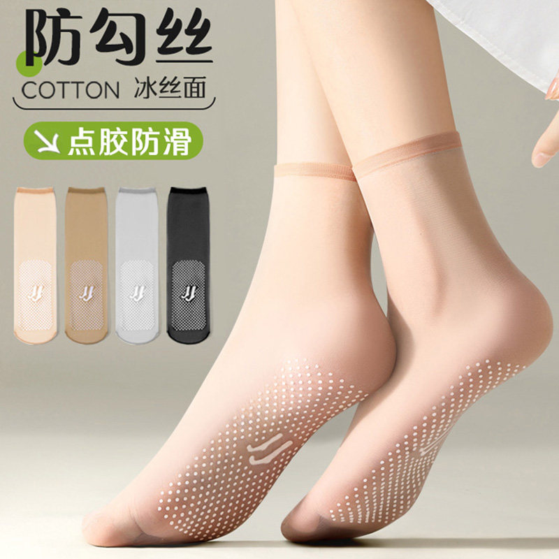 诸暨丝袜女短袜夏季薄款无痕防勾丝防滑棉底透明水晶丝超薄中筒袜
