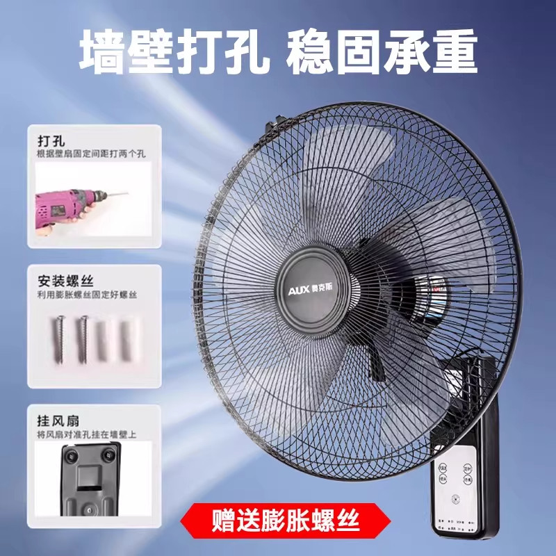 奥克斯强力挂壁式电风扇遥控风扇壁扇家用宿舍大风力墙壁扇换新