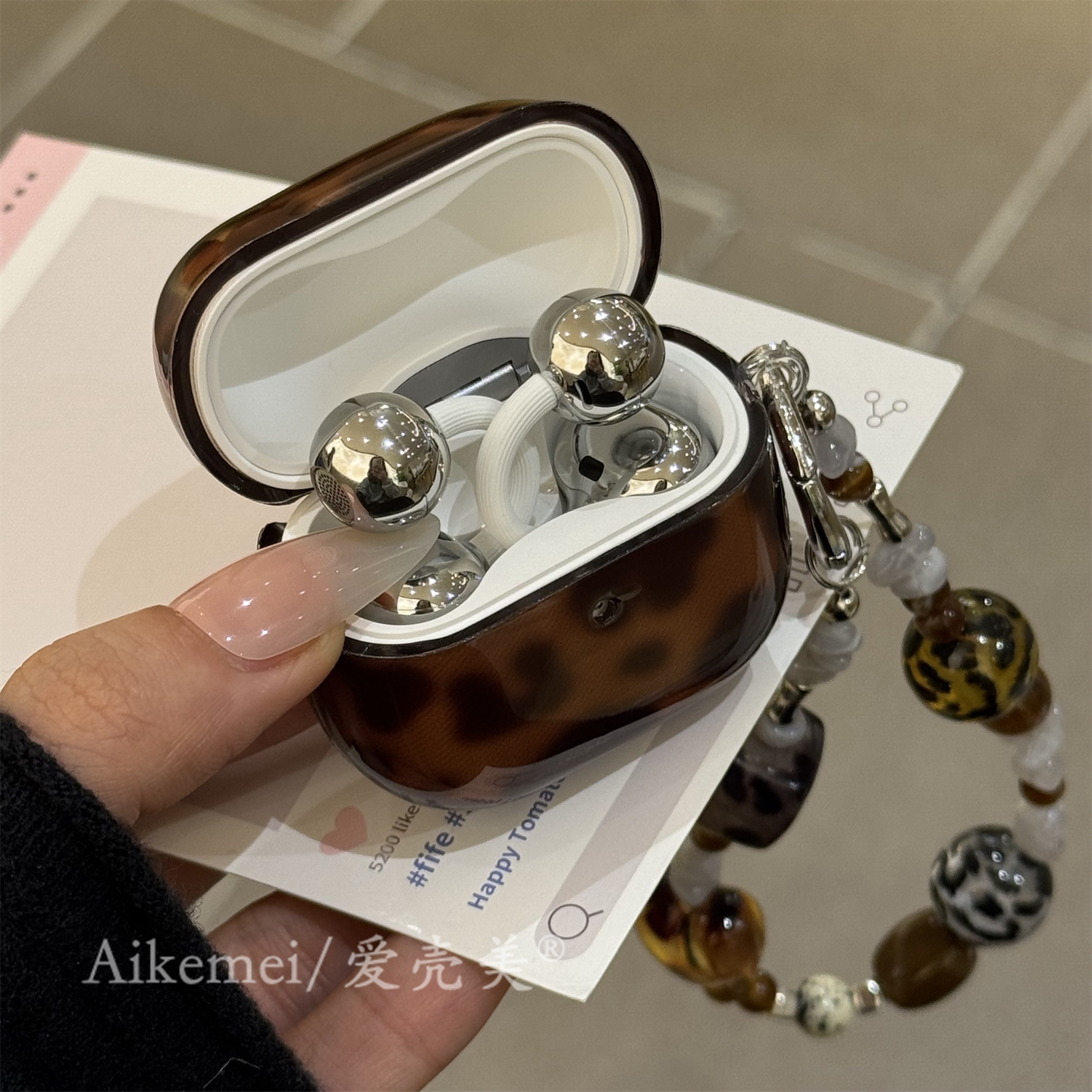 适用华为freeclip2耳机套freebuds7i辣妹半透琥珀色豹纹6i链条苹果airpods4甜酷三星buds2无线蓝牙pro4硅胶套