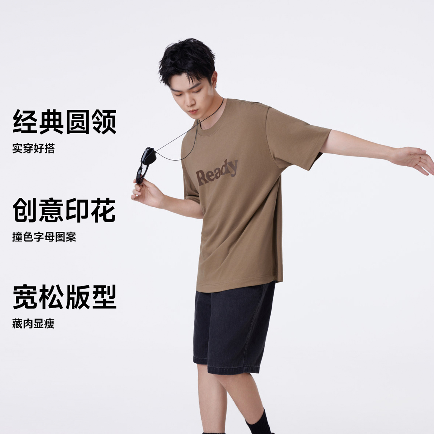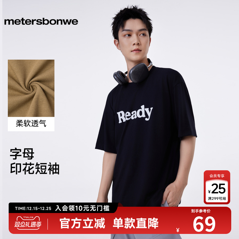 美特斯邦威男士短袖t恤2025夏季新款潮流休闲字母印花透气上衣