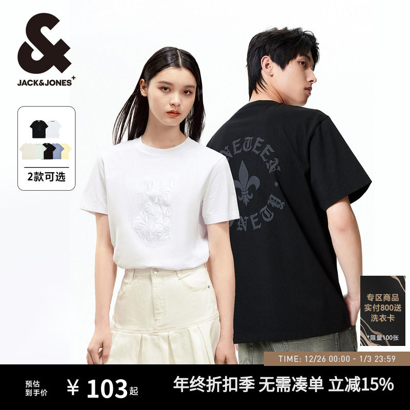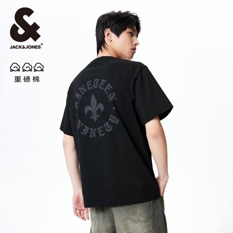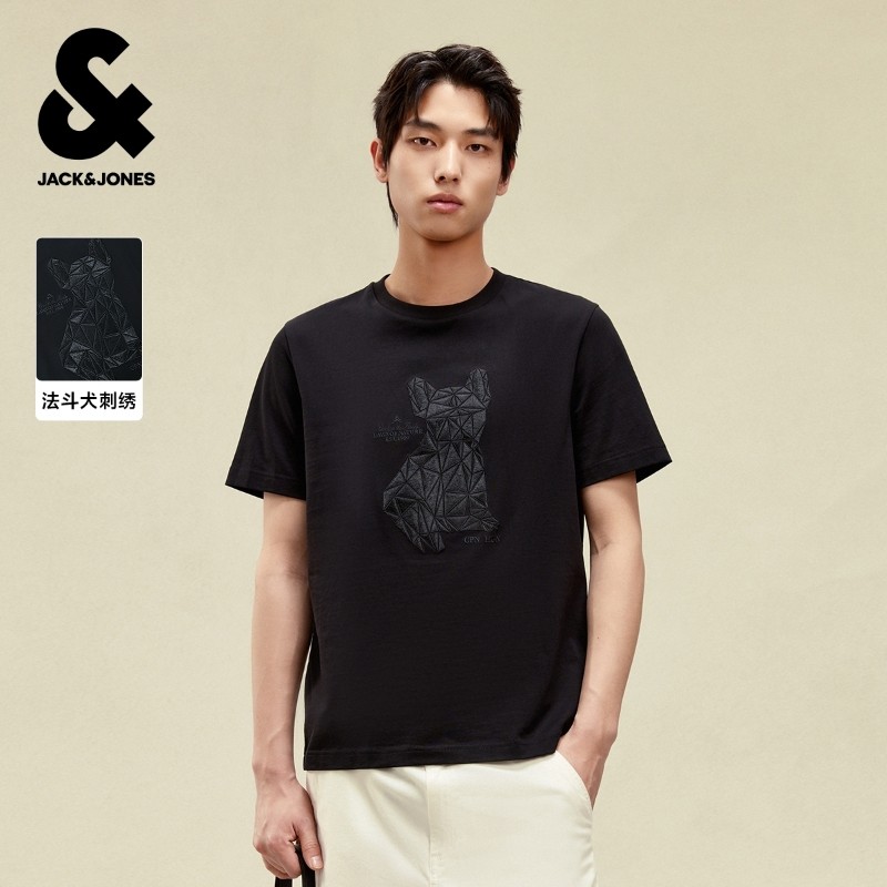 杰克琼斯2025年男装秋季新款短袖法斗犬刺绣/哥特发泡胶印T恤打底