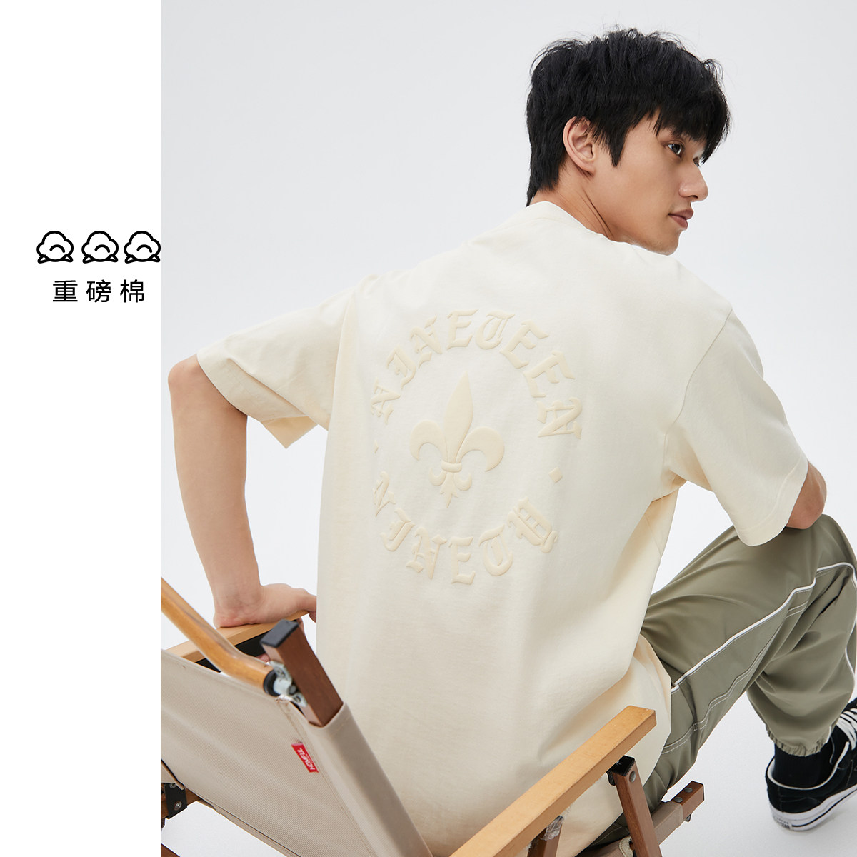 小尼力bf美式重磅纯棉短袖t恤男女基础款纯色oversize打底白色TEE