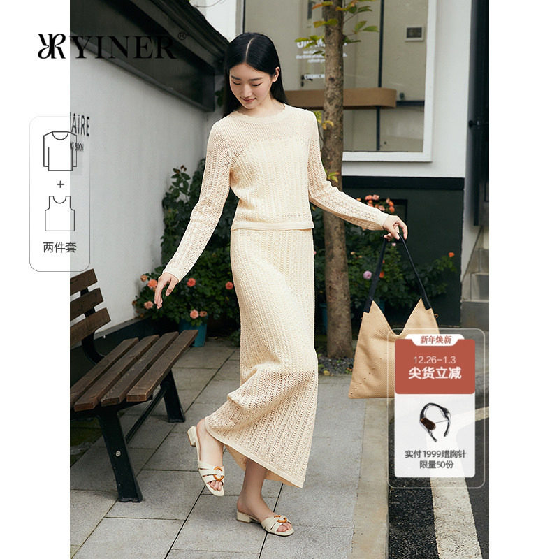 YINER音儿专选2025秋季新款波西米亚风钩花镂空两件套针织衫