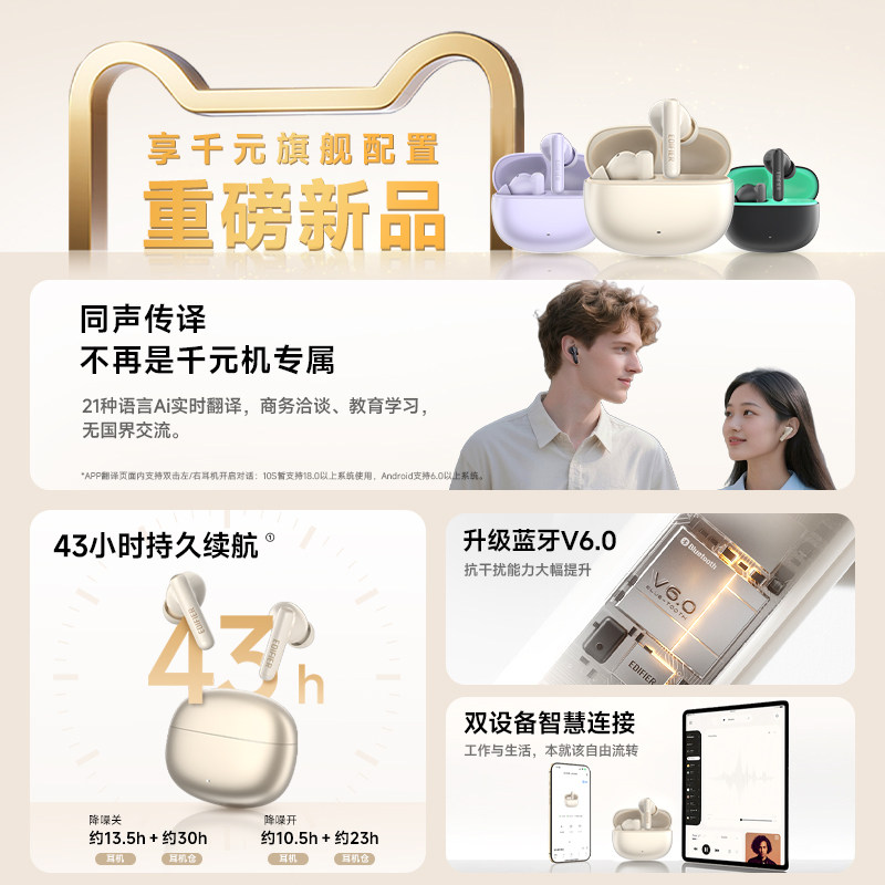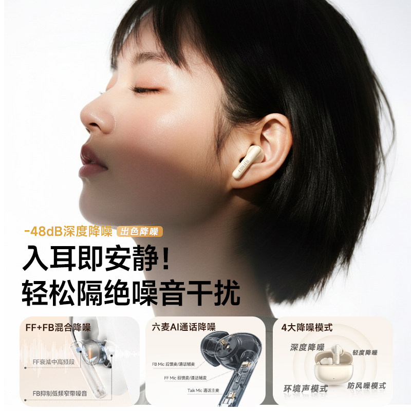 音贝奇Real1Pro无线蓝牙耳机主动降噪入耳式2026新款高音质长续航