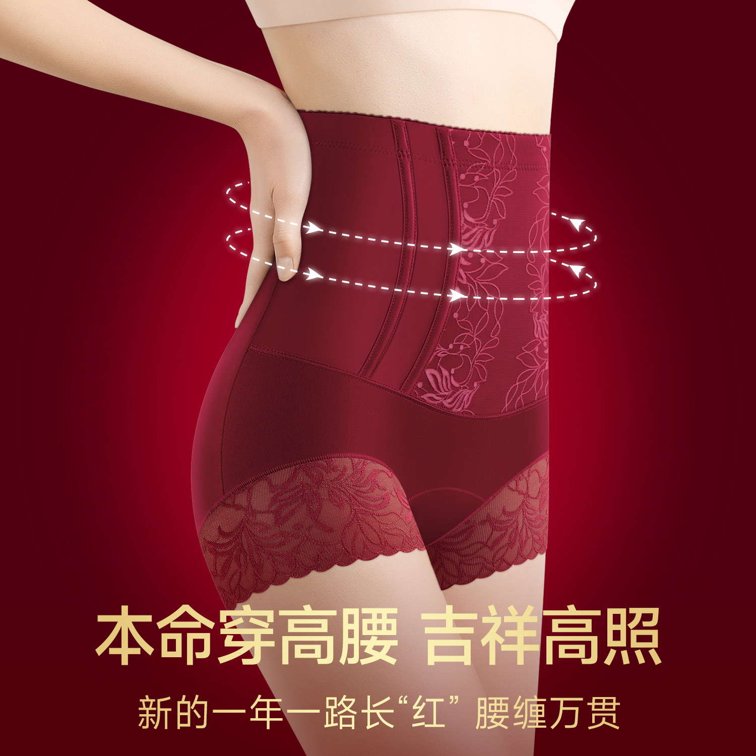 高腰收腹裤本命年红色内裤强力收小肚子塑身提臀女2026年属马新年