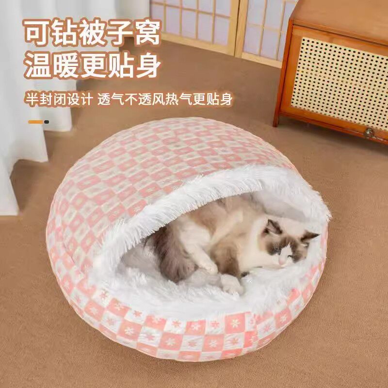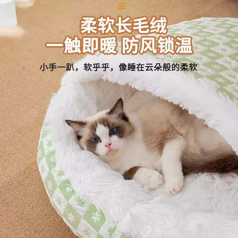 猫窝冬季保暖半封闭式可拆洗四季通用猫咪窝狗窝猫床猫屋幼猫窝垫