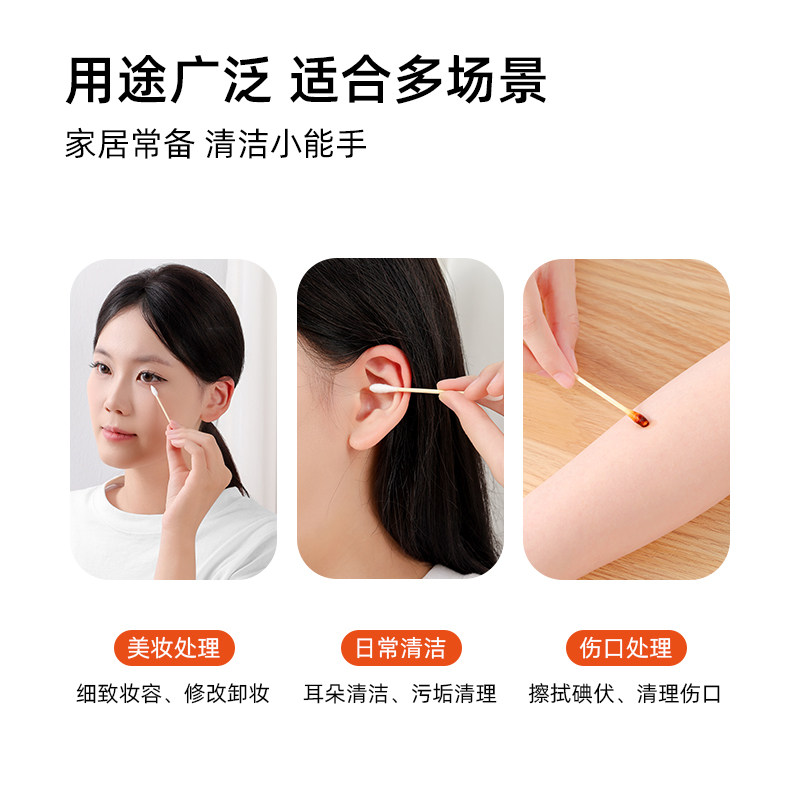 比高棉签家用双头一次性化妆卸妆用掏耳朵挖耳尖头卫生小头棉棒