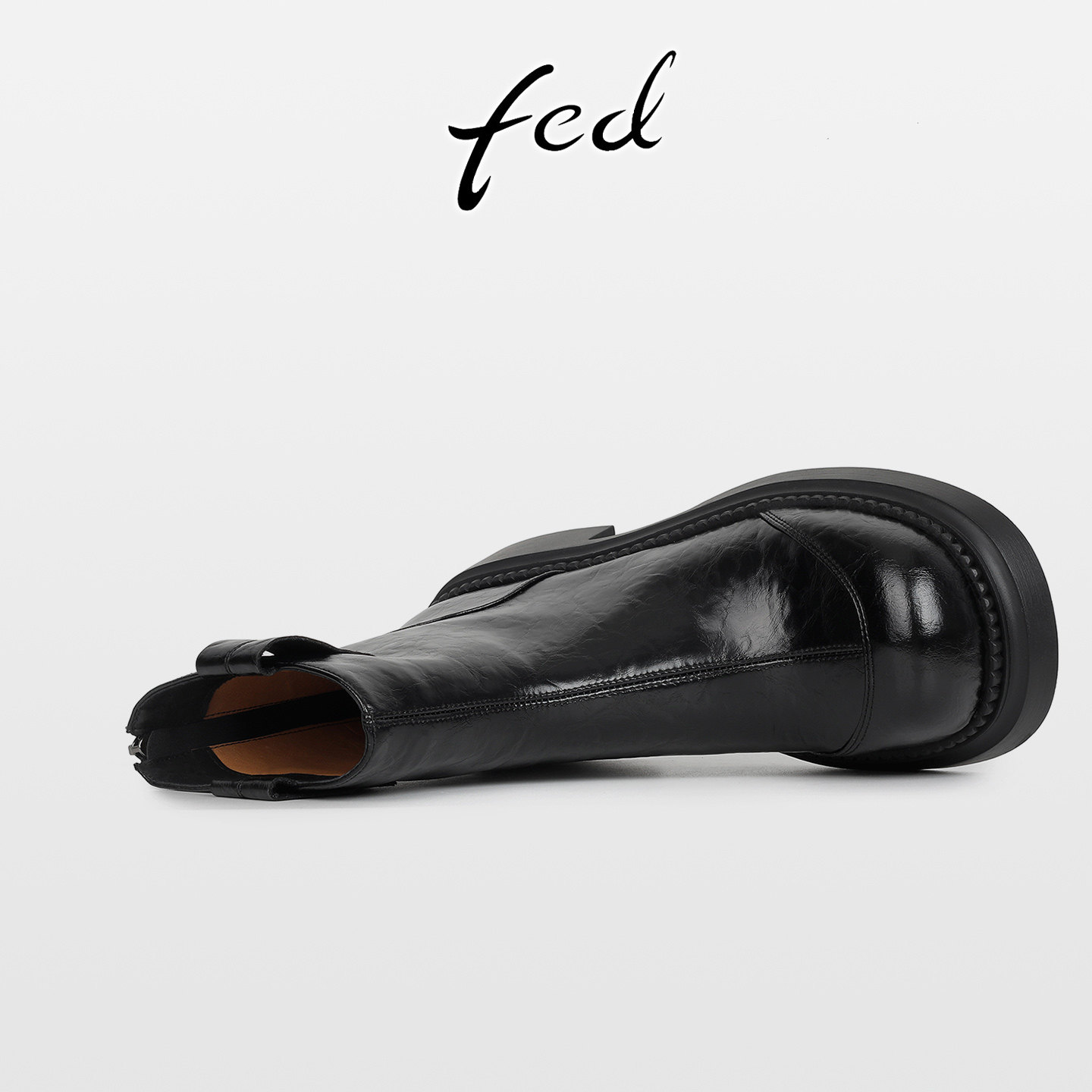 fed复古真皮粗跟厚底马丁靴女秋冬新款后拉链中跟圆头瘦瘦小短靴