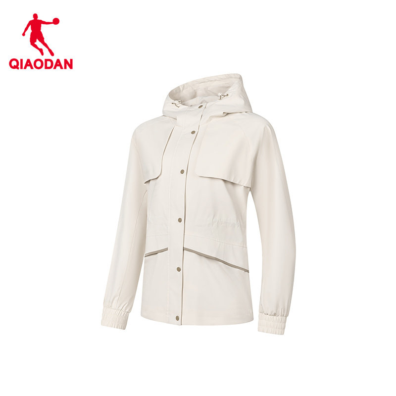 乔丹连帽梭织风衣女生2025冬季新款单层防风休闲运动户外登山外套