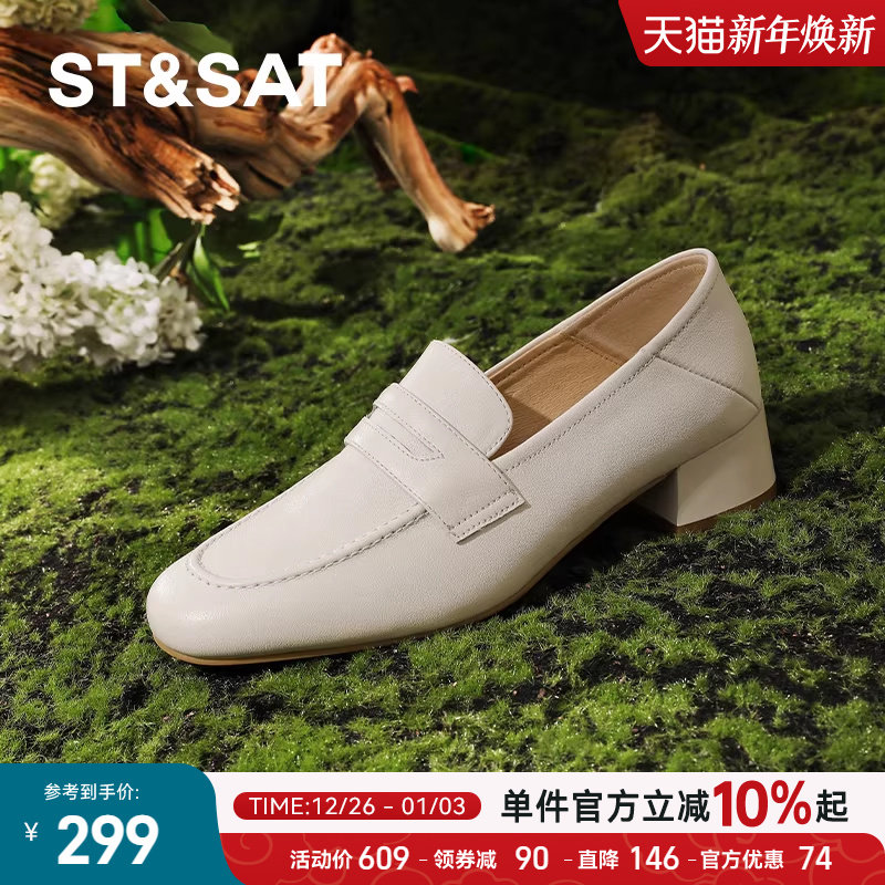 星期六乐福鞋女真皮中跟2025新款女鞋夏季单鞋软皮小皮鞋妈妈鞋子