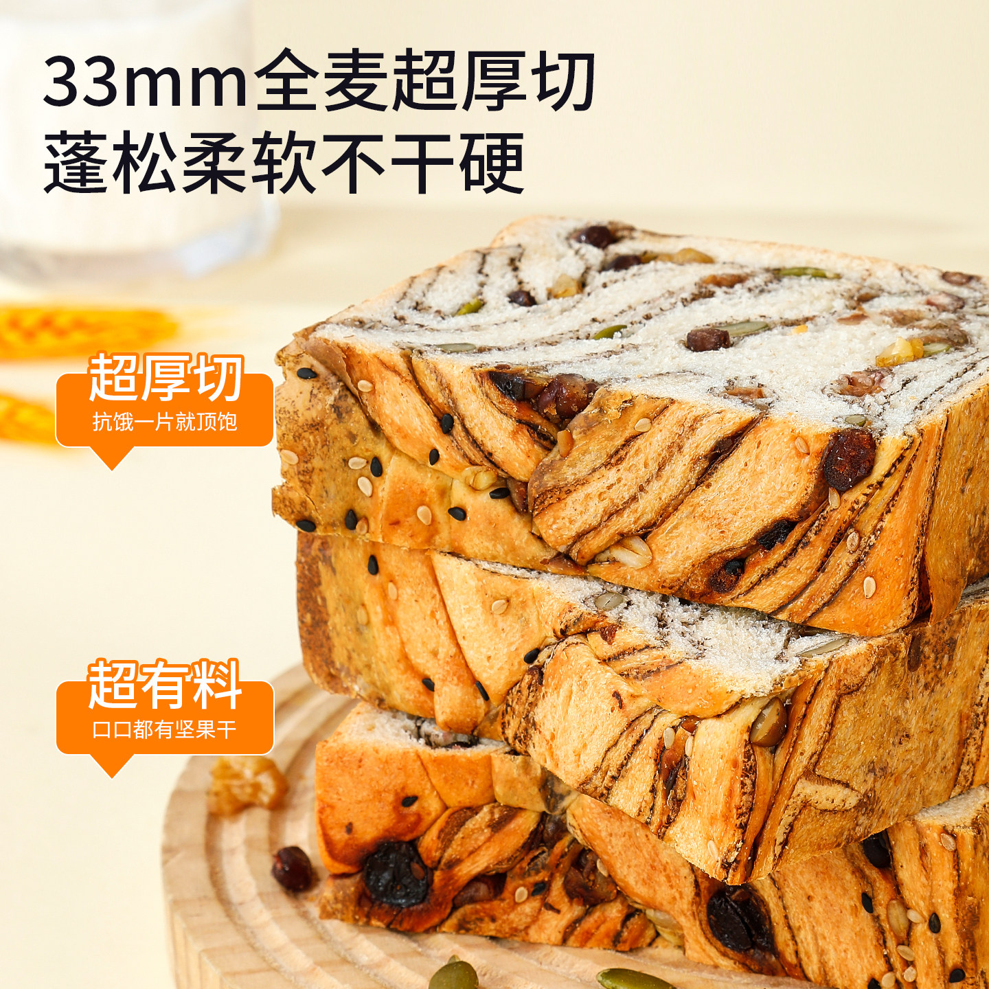 全麦坚果厚切吐司面包0无蔗糖营养代餐零食脂早餐整箱速食非油炸