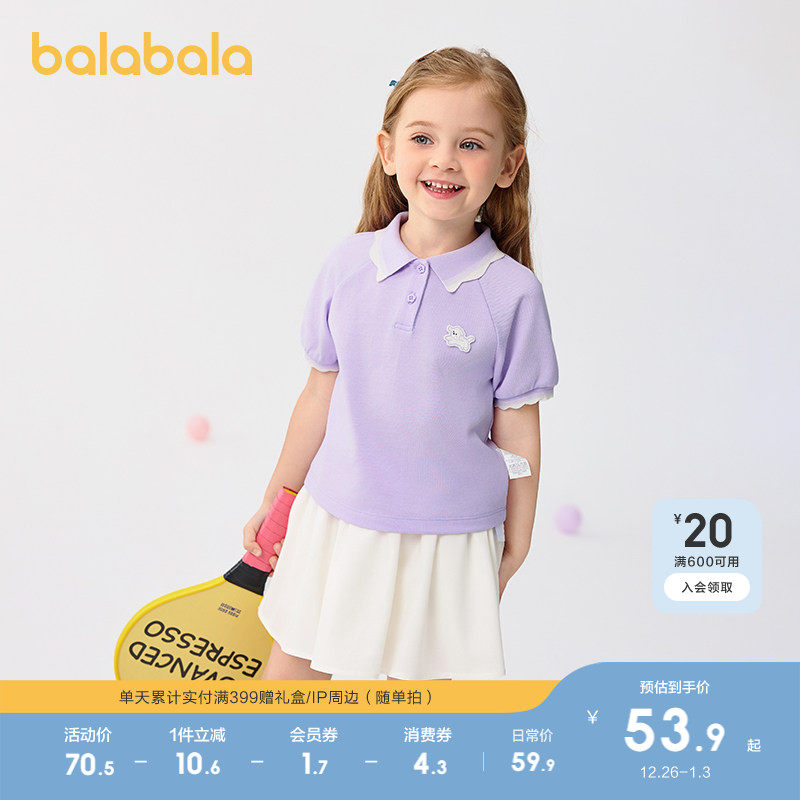 巴拉巴拉童装女童短袖T恤儿童宝宝上衣2025新款夏装甜美POLO衫潮