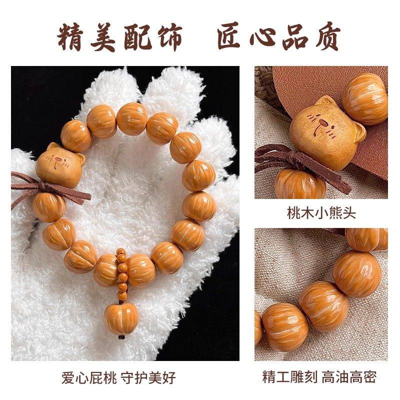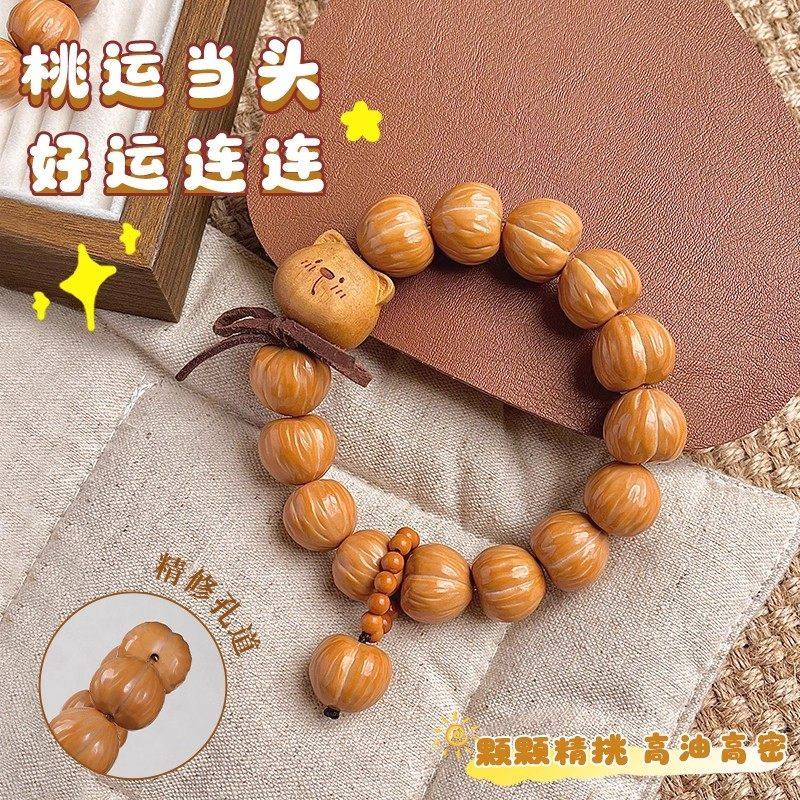 爱心屁桃猴头手串高抛光面拉丝屁桃小熊核桃文玩佛珠手链手持女款