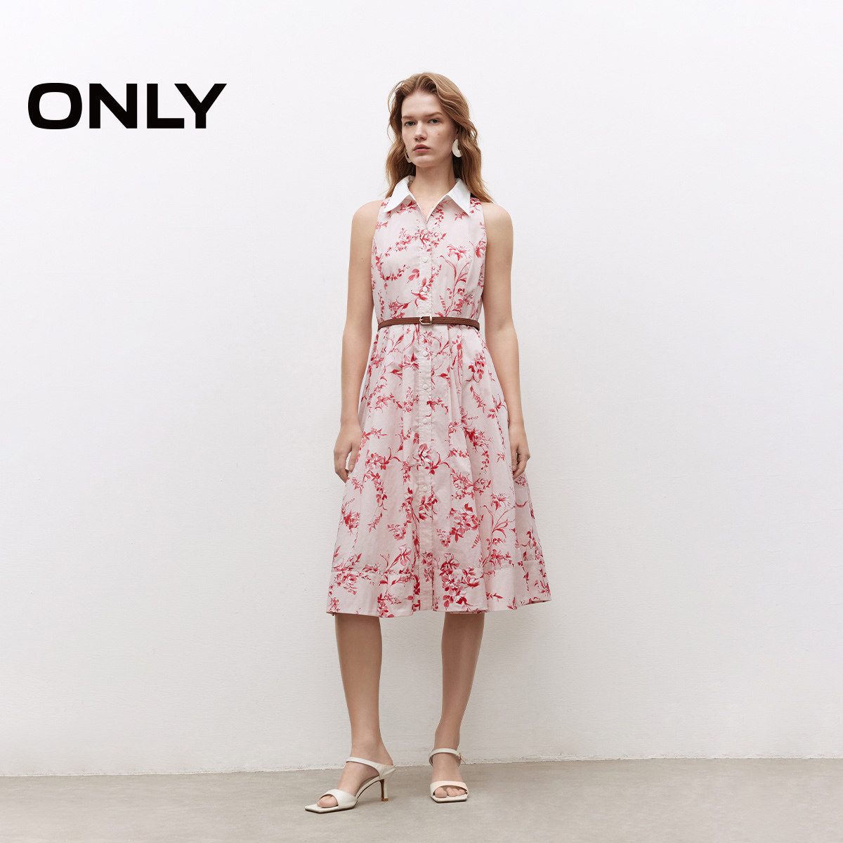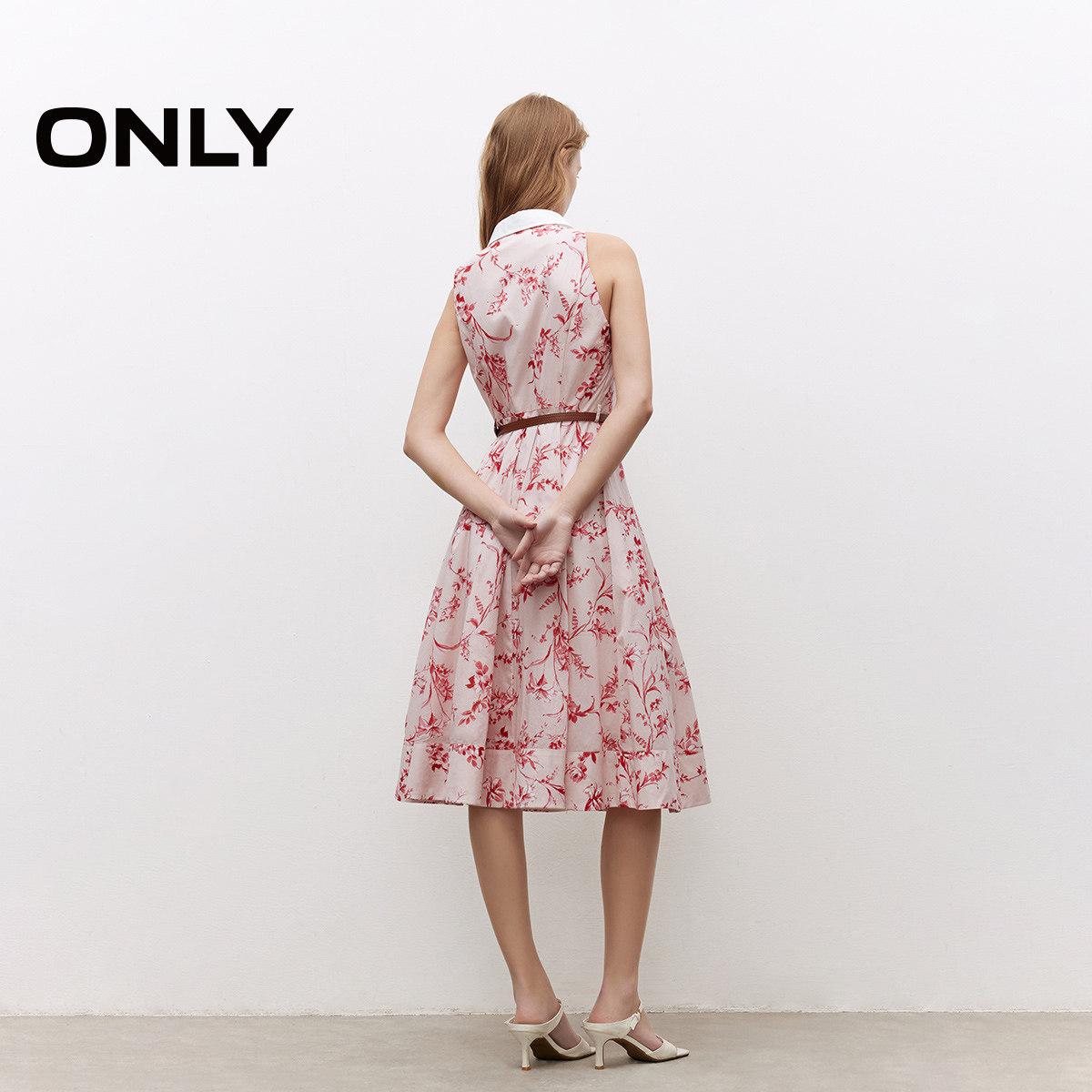 ONLY2025夏季新款拼接翻领浪漫清新印花/条纹收腰中长裙连衣裙女