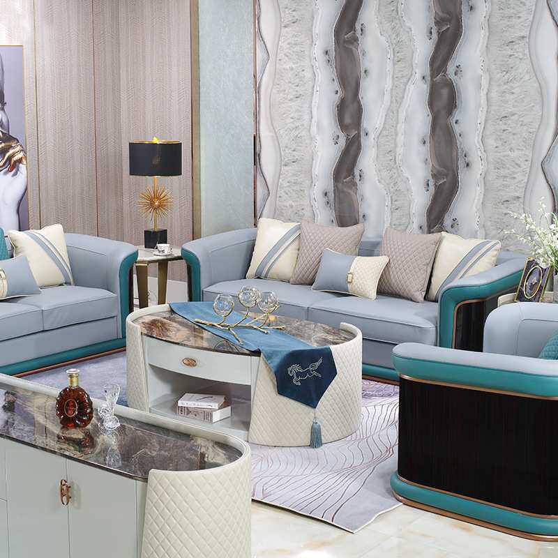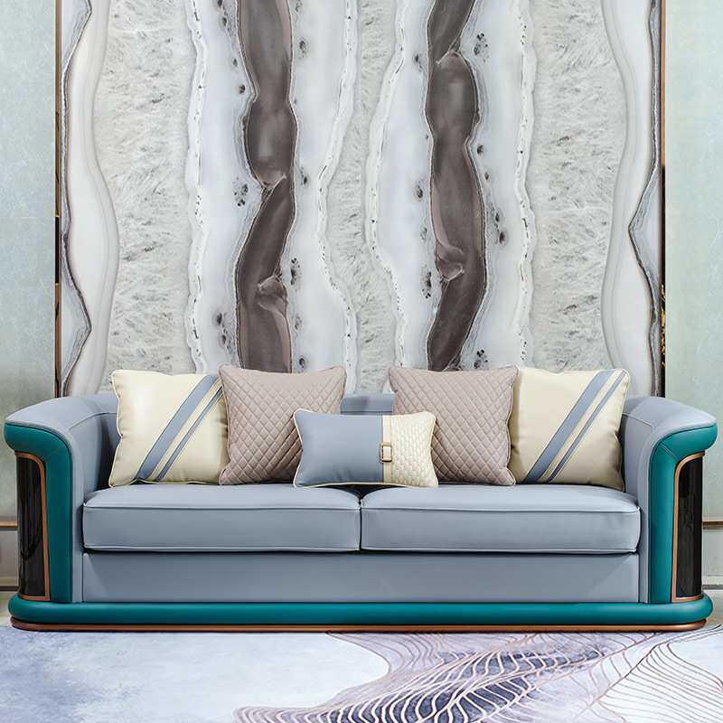意式皮艺小户型沙发 家用客厅双人三人实木轻奢沙发 意式家具