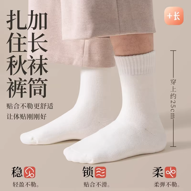 袜子男中筒袜男士袜子吸汗透气长筒袜篮球袜白色男袜白色白塔袜子