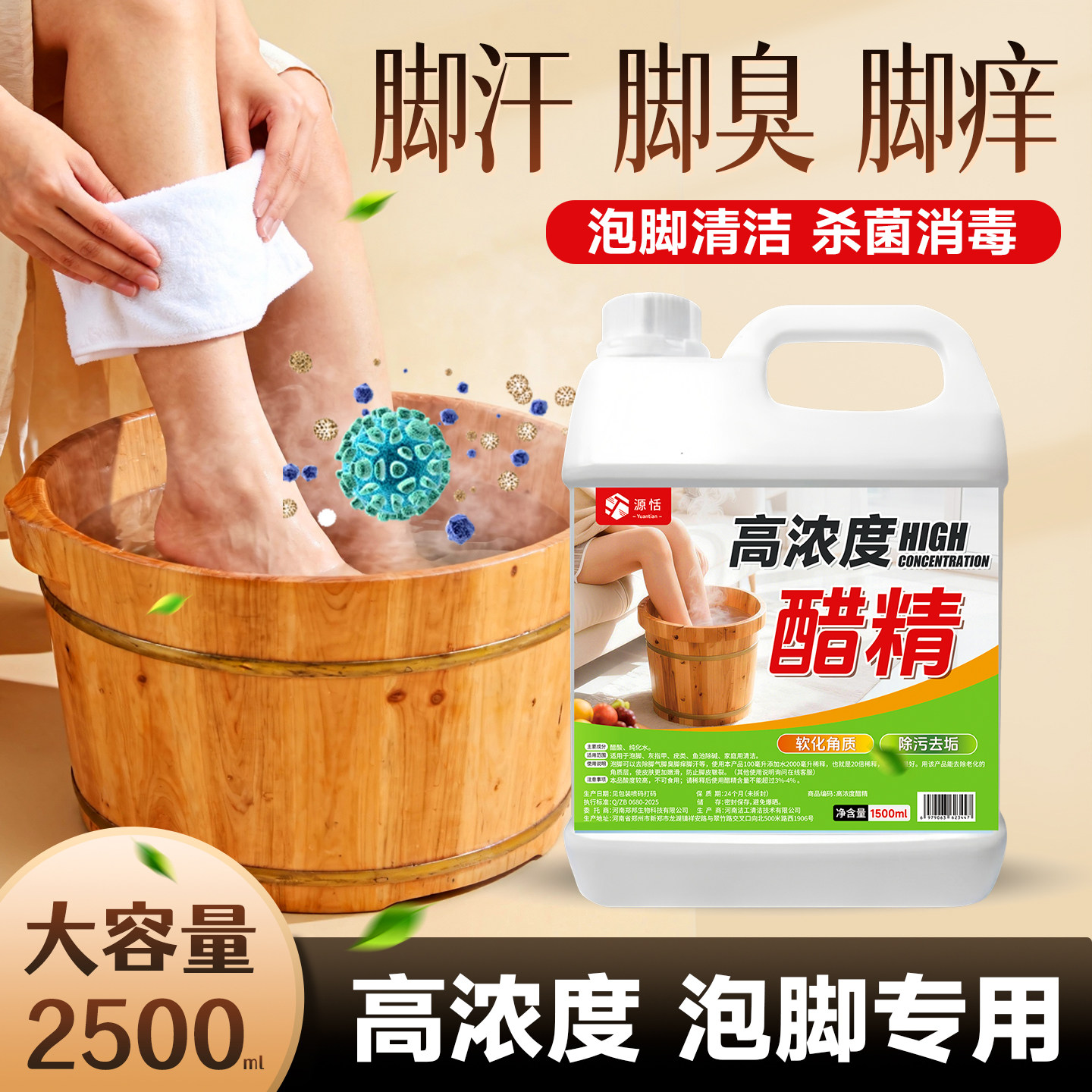醋精泡脚杀菌灰甲水专用抑菌止痒除脚臭脚气足浴店同款清洁植物