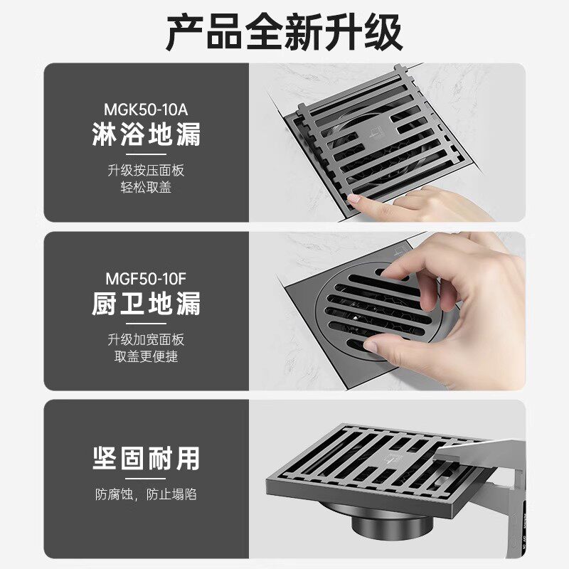 九牧铜合金地漏枪灰大流量防臭防堵卫生间通用浴室洗衣机两用芯盖