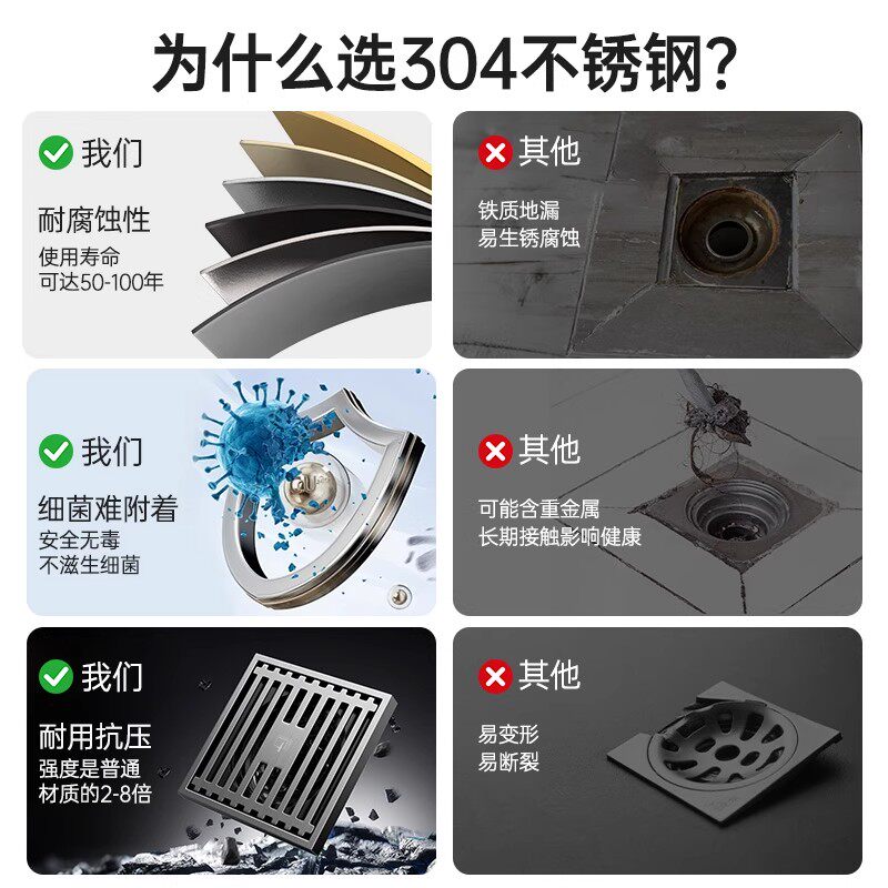 不锈钢地漏过滤网方形厕所地漏毛发过滤网防堵塞头发卫生间地漏盖