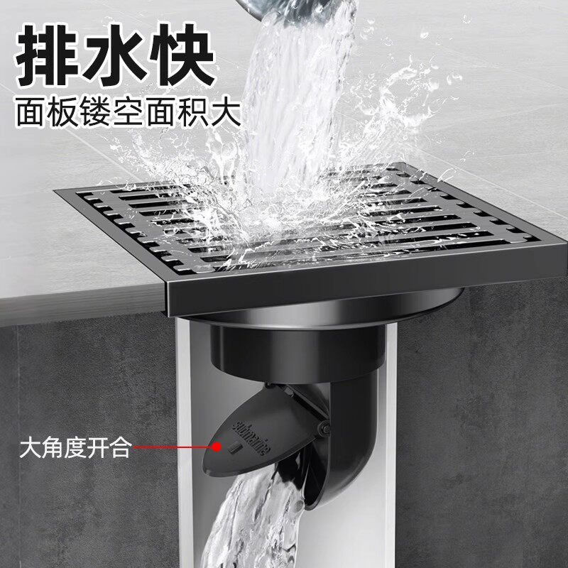 潜水艇正品地漏枪灰304不锈钢卫生间浴室通用防臭器洗衣机两用