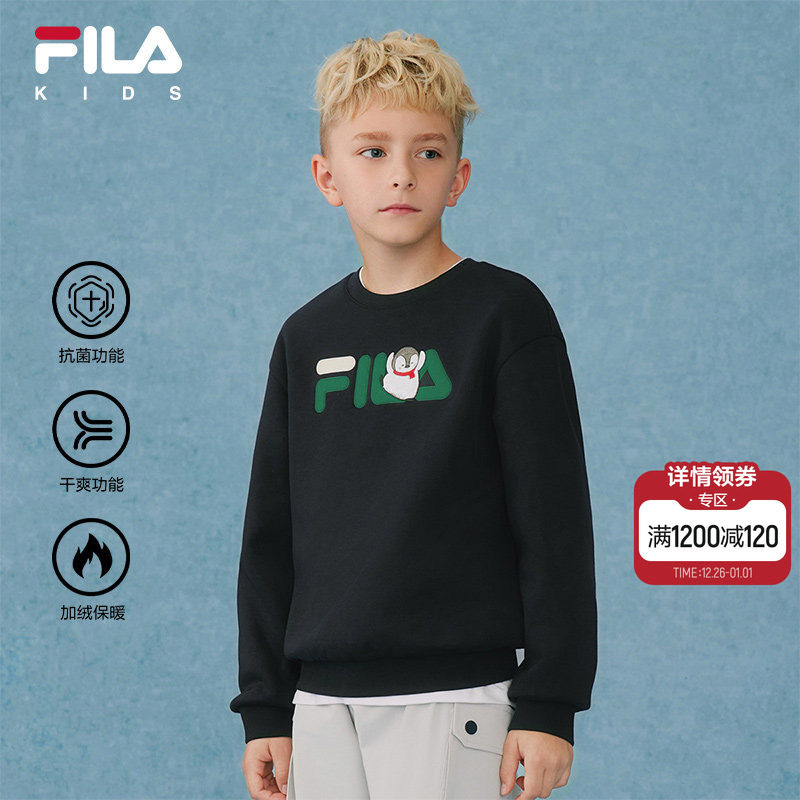 FILA KIDS斐乐童装儿童卫衣冬季款男女童加绒保暖抗菌套头上衣潮