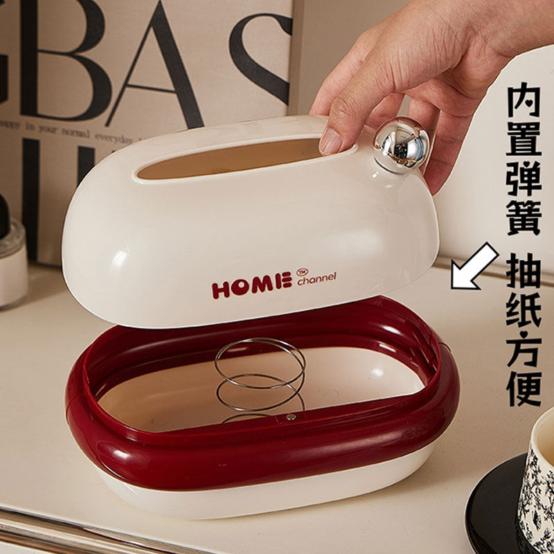 喜庆高级感红色纸巾盒创意家用茶几弹簧纸抽盒卧室床头桌面收纳盒