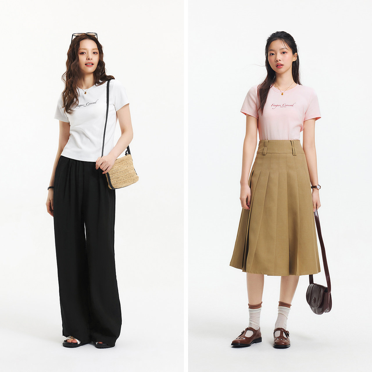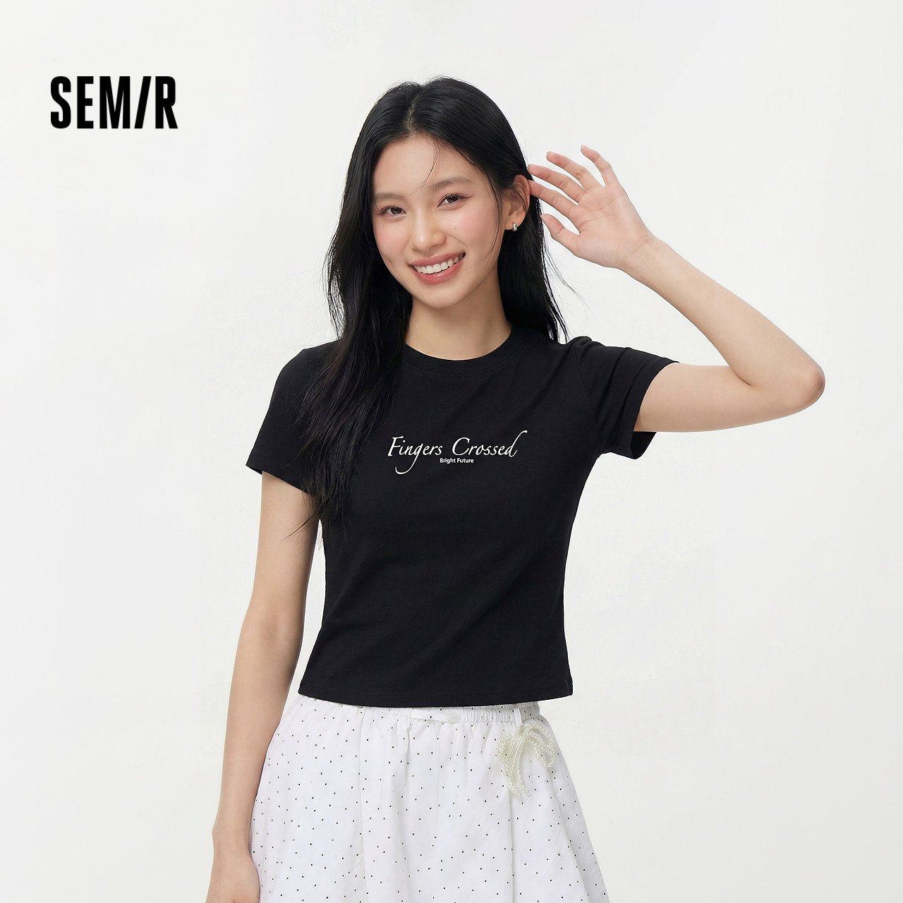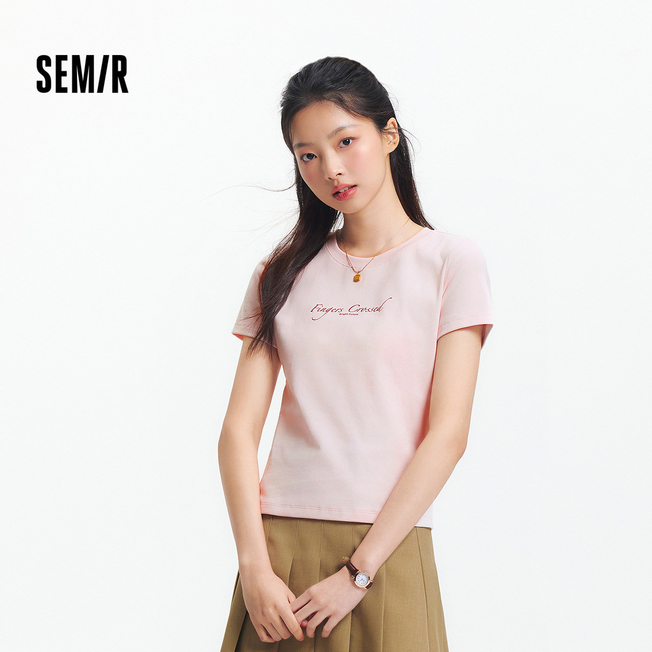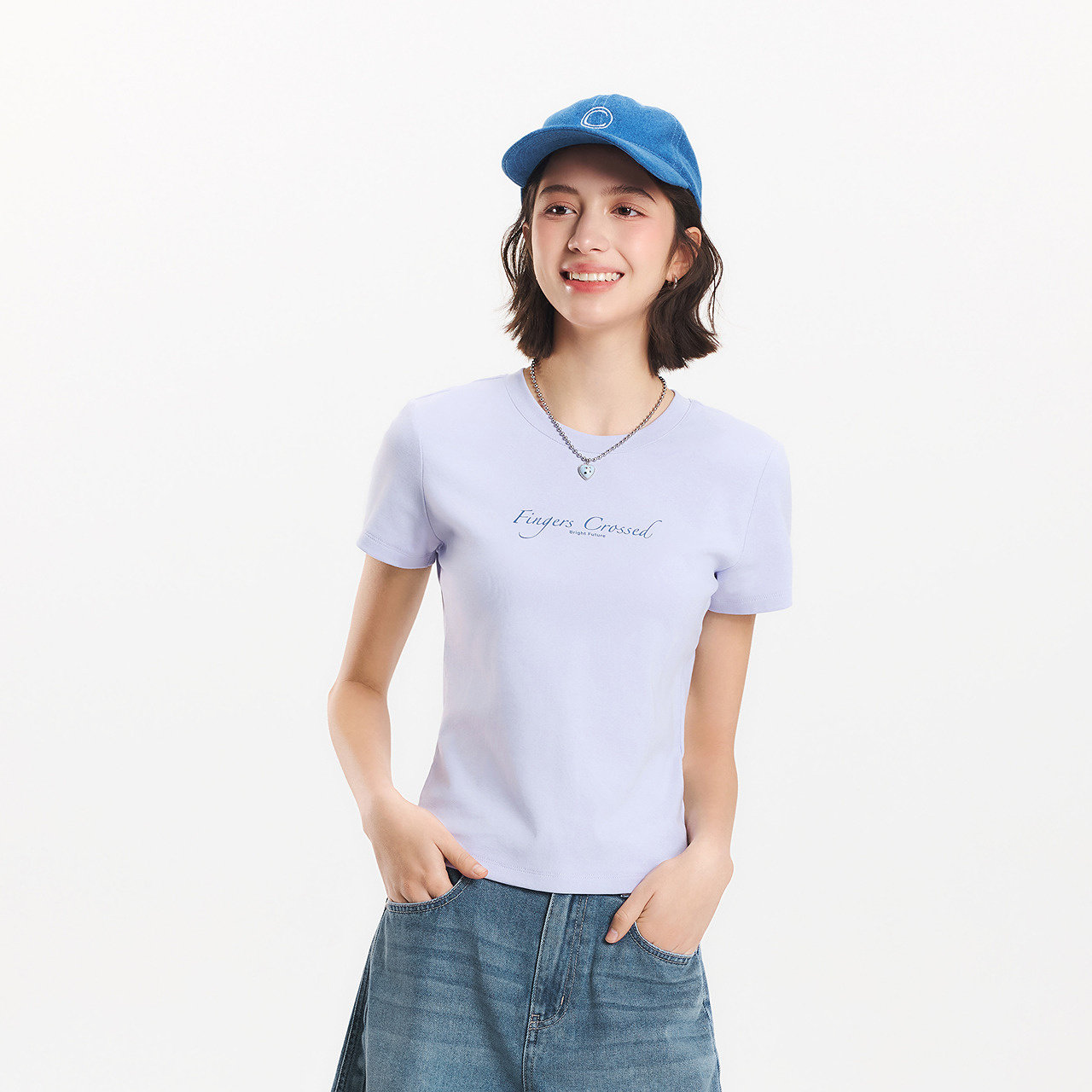 森马短袖T恤女夏季修身正肩字母圆领上衣印花简约休闲时尚打底衫