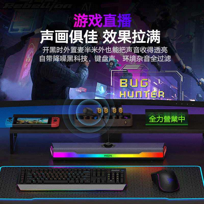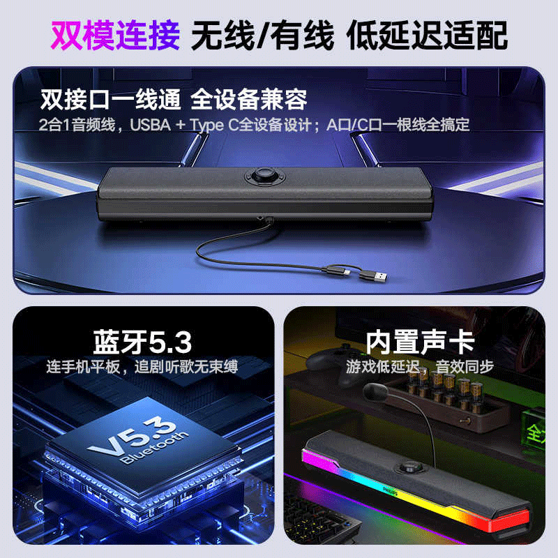 飞利浦SPA6110台式电脑音响家用游戏电竞蓝牙桌面音箱麦克风一体