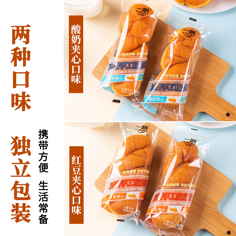 10根手撕酸奶大麻花夹心软面包早餐休闲零食品红豆软麻花手工糕点