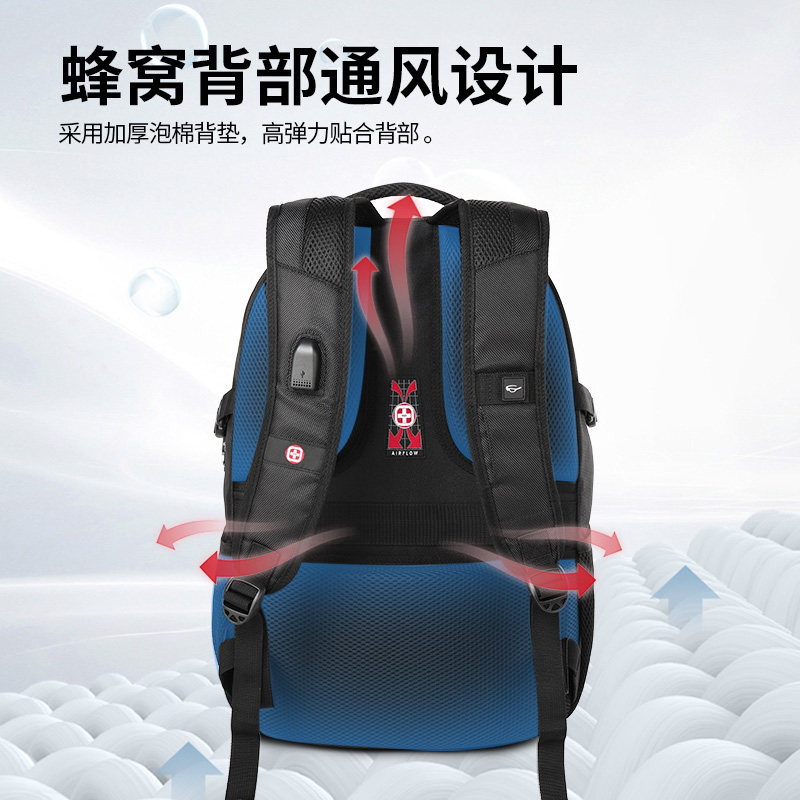 CROSSGEAR十字勋章瑞士军刀防泼水13456寸商务休闲男旅行出差USB充电口大容量防摔震男笔记本电脑双肩书背包