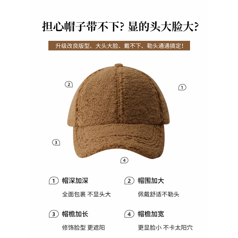 光板羊羔毛帽子女秋冬季韩版潮款鸭舌帽网红泰迪绒加厚保暖棒球帽