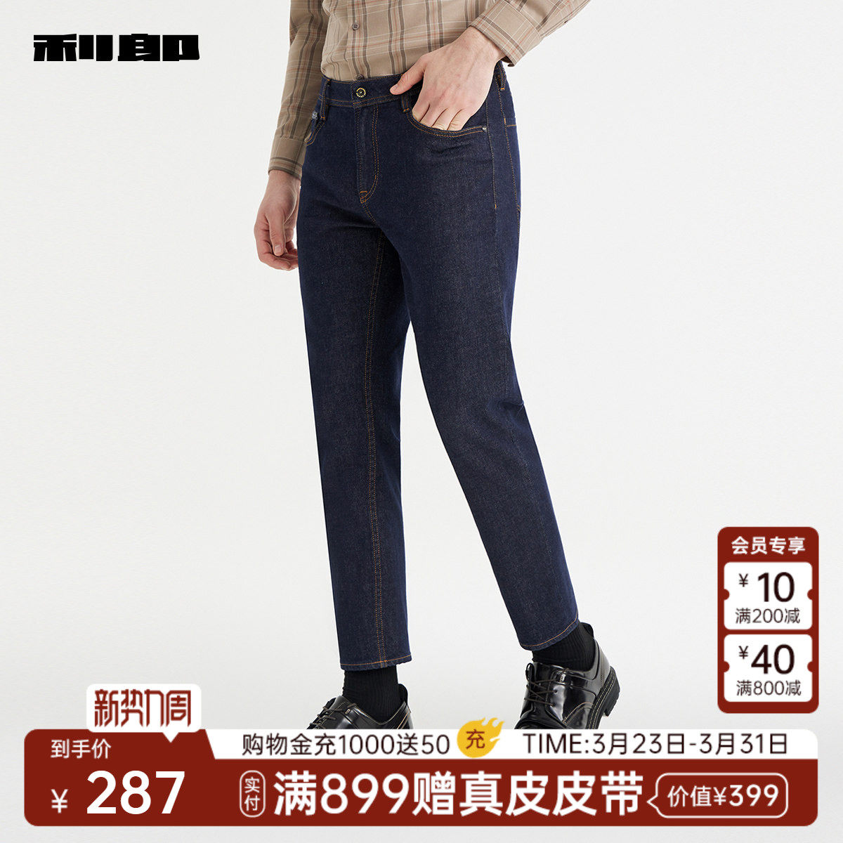 【九分裤】利郎牛仔裤男士中腰小脚裤春秋款新款弹深蓝黑裤子男