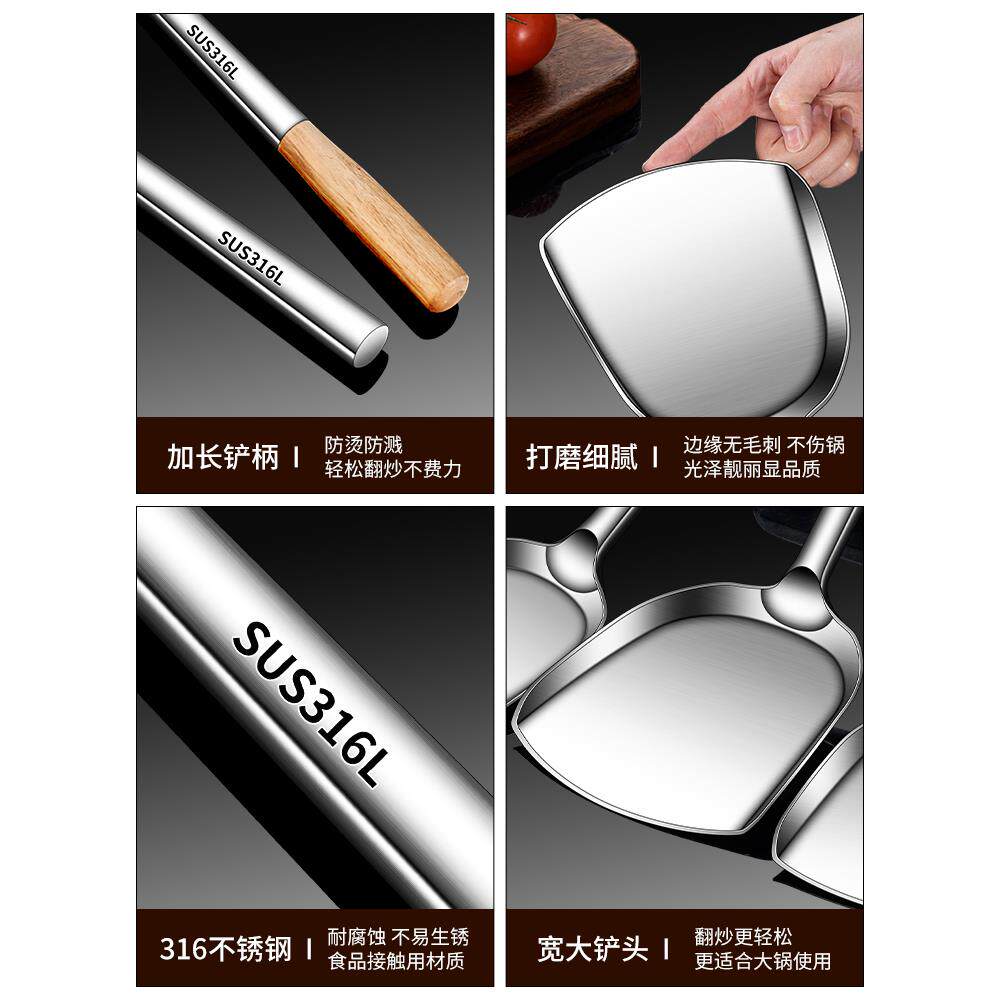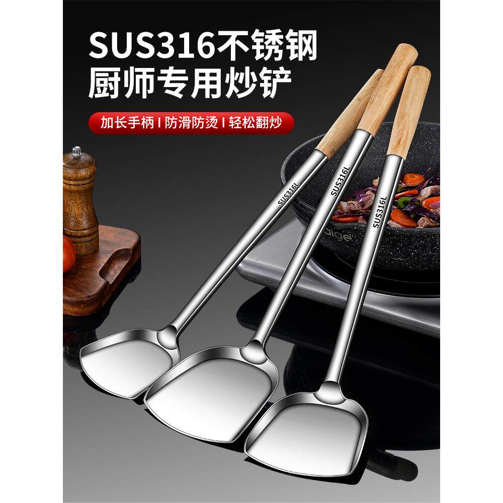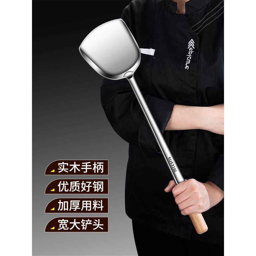 316炒勺炒铲厨师专用不锈钢锅铲大号商用分菜勺炒菜勺子铲子加长