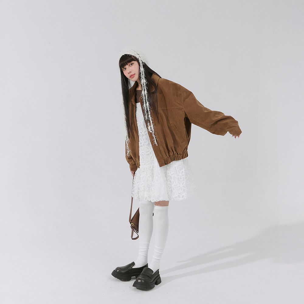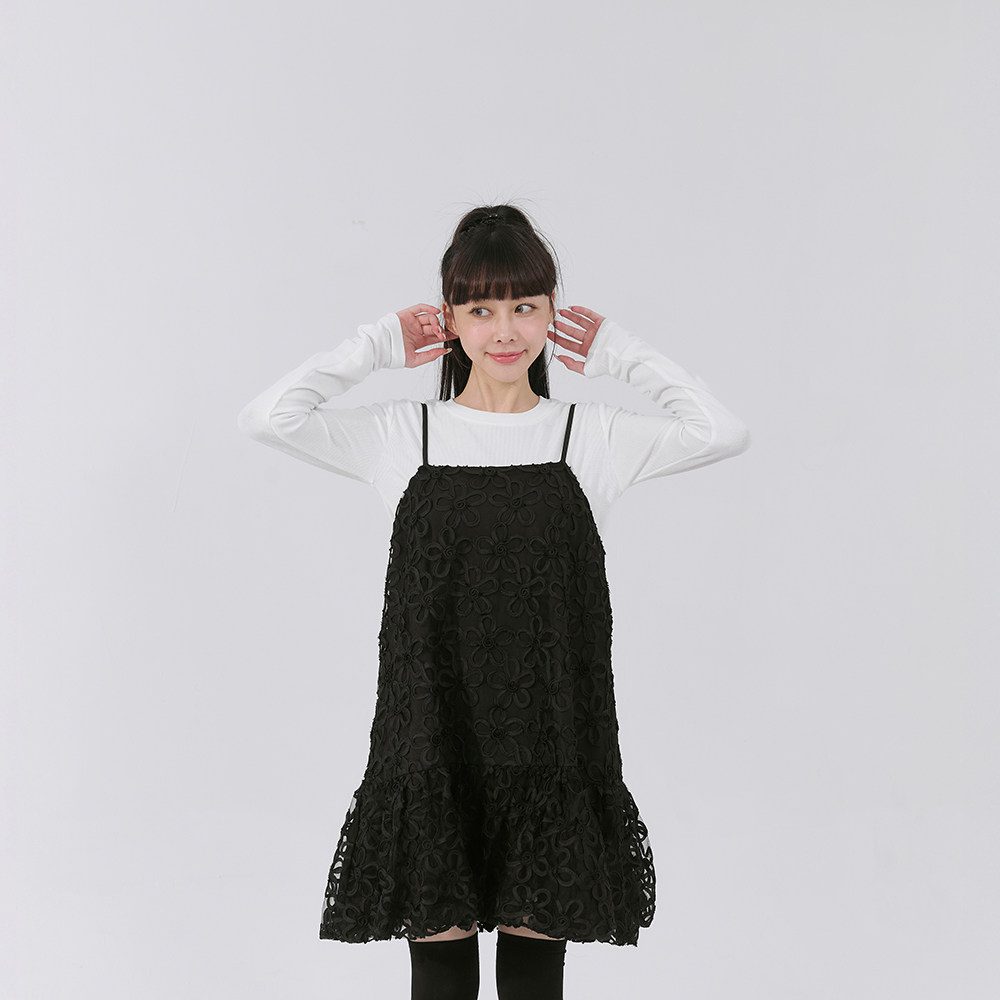 QUEENSHOP 2025秋冬新品女装立体花花细肩花苞短连衣裙01087164