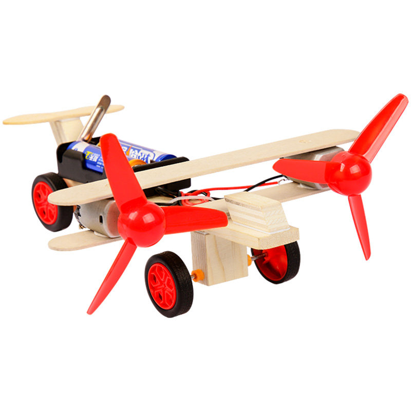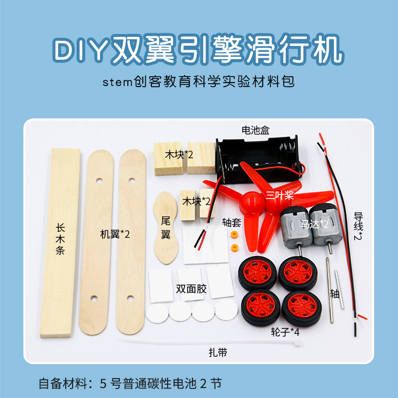 科学小制作 DIY双翼引擎滑行飞机幼儿园科学实验教具小学生作业