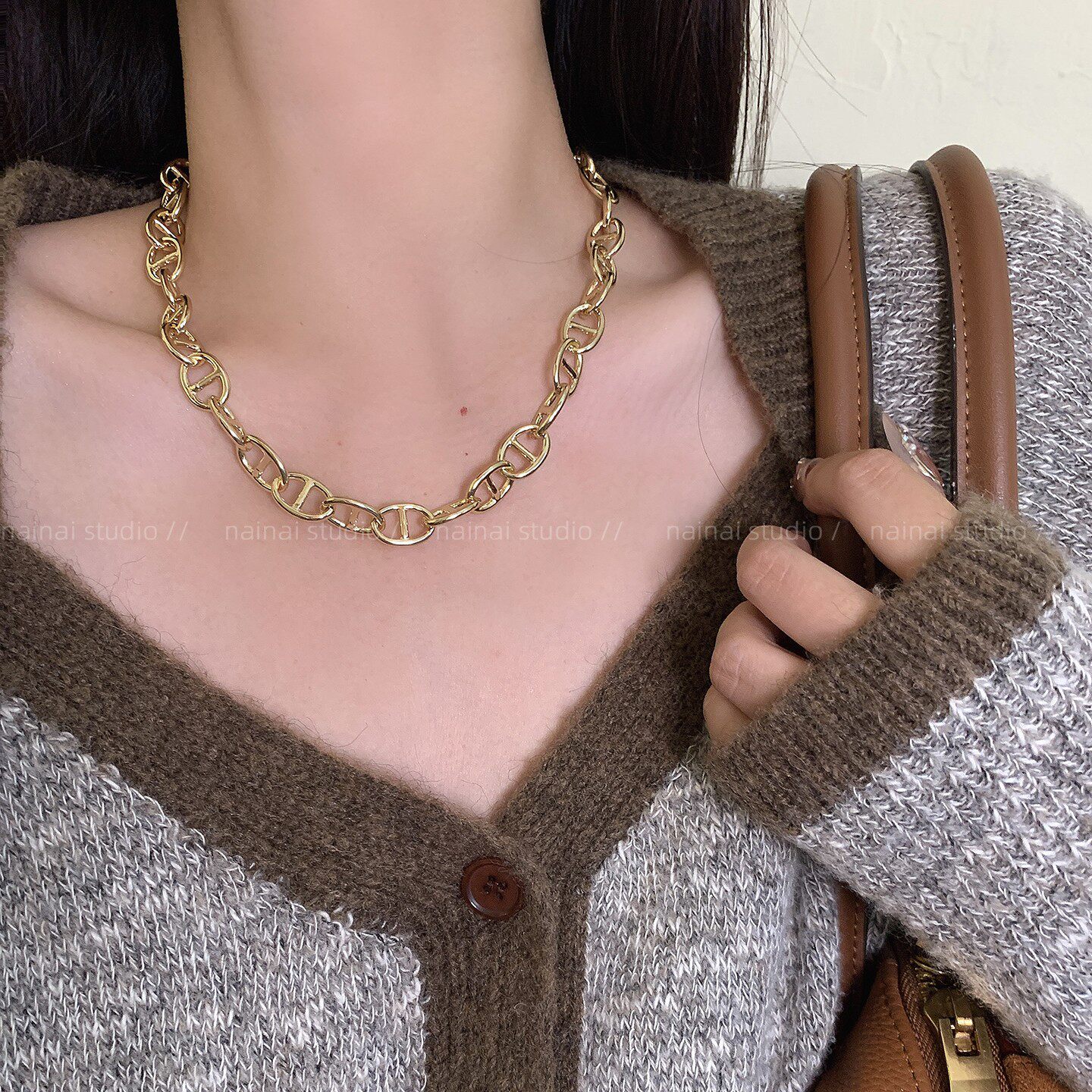 猪鼻子项链~小众设计高级感冷淡风轻奢网红锁骨链choker颈链女潮A