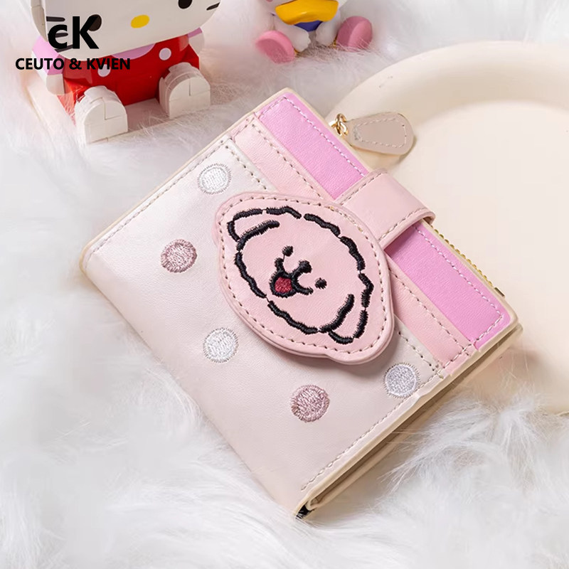 卡通线条小狗多卡位零钱包少女心钱包小众设计卡包学生证件收纳包