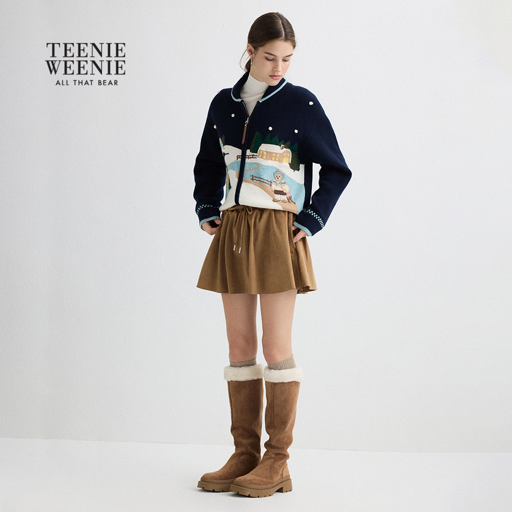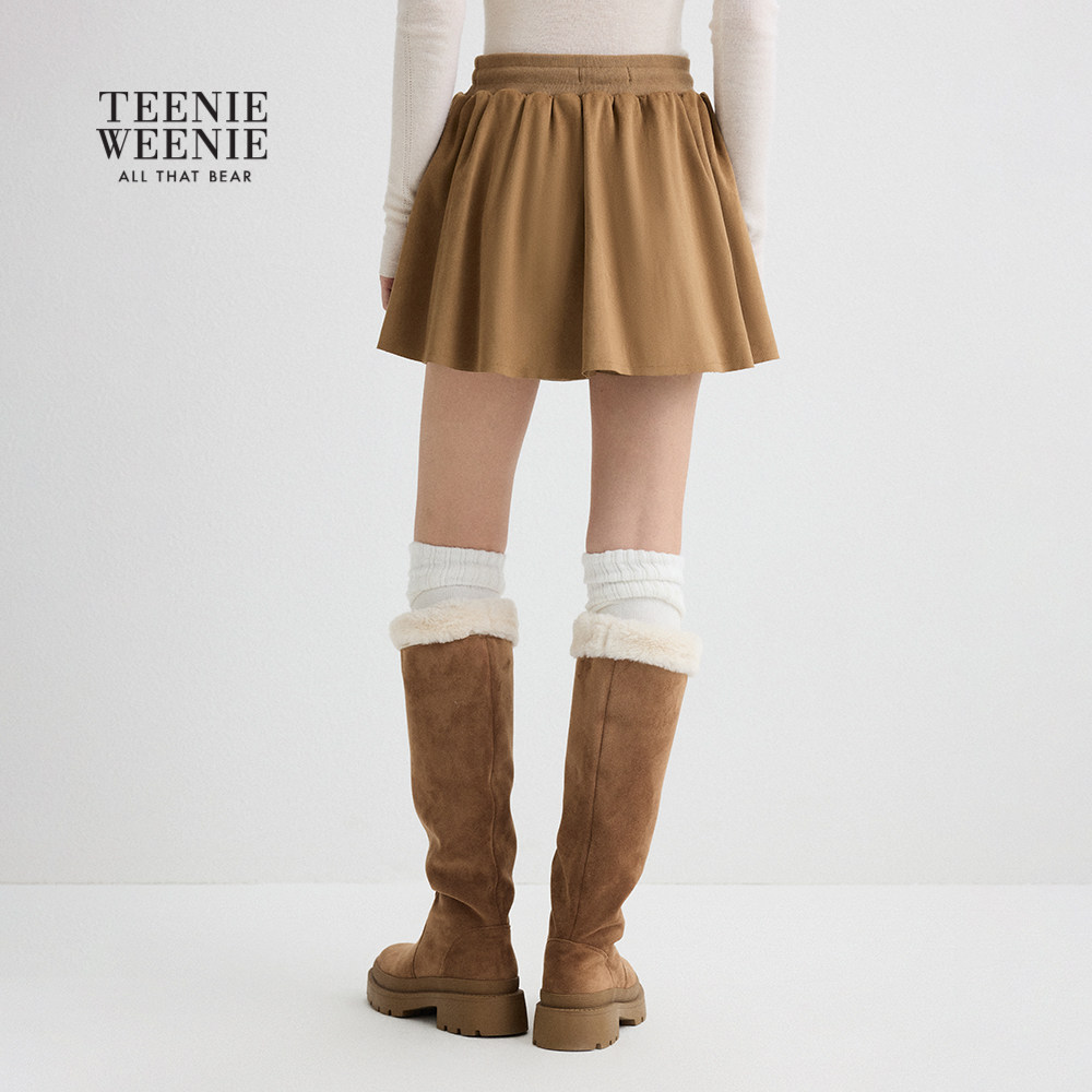 TeenieWeenie小熊女装简约半身裙2025冬季新款舒适设计感A字伞裙